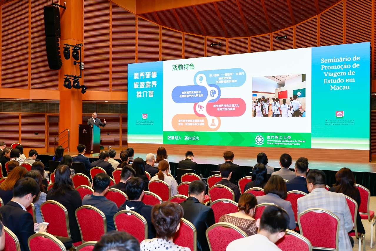 旅游局今(24日)举办“澳门研学旅游业界推介会”,邀请相关政府部门、私企及高等院校介绍各自领域的研学资源,让旅游业界熟悉澳门的研学资源,把握澳门研学旅游的发展机遇,推出具澳门特色的研学旅游线路及产品,促进“旅游+教育”的发展,共同打造澳门成为研学旅游目的地。