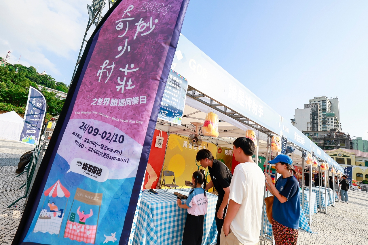 旅游局持续透过资助计划,鼓励澳门社团举办多元化旅游活动或项目,带动社区经济。受资助活动 - “2024奇妙小村庄之世界旅游同乐日”今(26日)于塔石广场启动,居民和旅客可体验摊位游戏、享用特色美食和购买文创产品,共享金秋欢乐时光,喜迎国庆佳节。