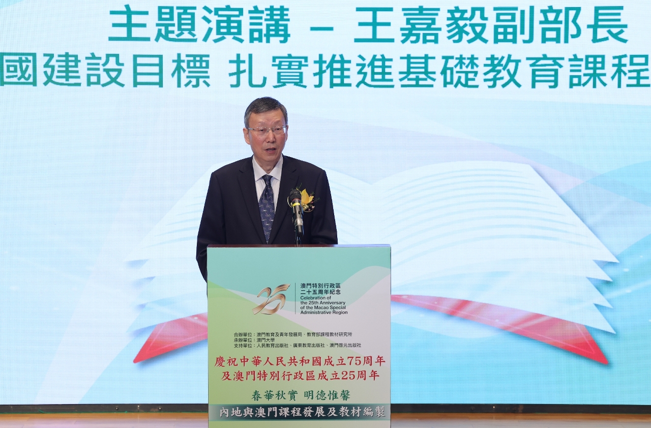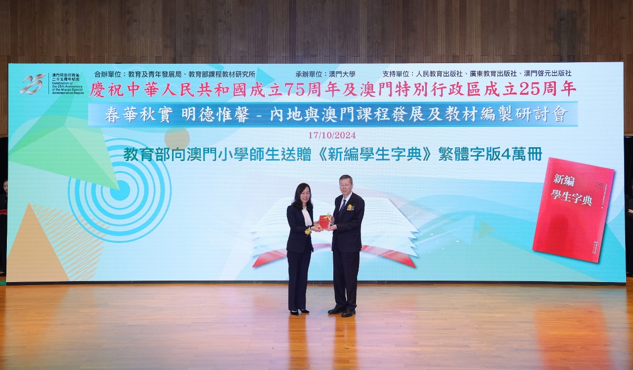 适逢本年为中华人民共和国成立75周年和澳门特别行政区成立25周年,为展示“一国两制”在澳门成功实践的重大意义,由教育及青年发展局与国家教育部课程教材研究所合办,澳门大学承办,人民教育出版社、广东教育出版社及澳门启元出版社支持的“内地与澳门课程发展及教材编制研讨会”于10月17日在澳门大学学生活动中心举行。研讨会邀请内地及本澳课程教材领域的专家学者,与澳门教育界共同探讨课程改革及合作出版教材的成功经验,同场设有“内地与澳门大中小学教材展”,展示和回顾两地教材发展的历史和成果。