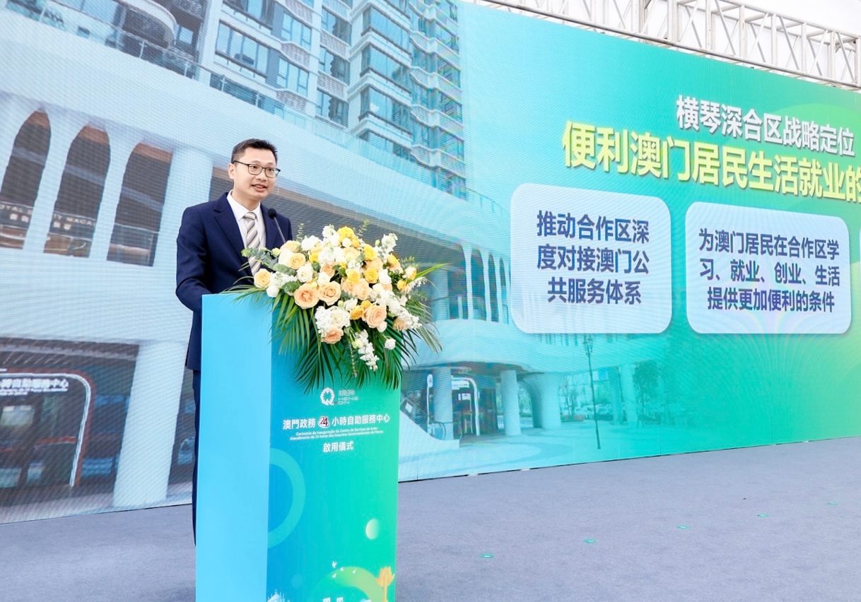 吴子健致辞时表示,“澳门新街坊”澳门政务24小时自助服务中心是合作区贯彻落实《横琴粤澳深度合作区建设总体方案》,推进公共服务和社会保障体系与澳门有序衔接,建设便利澳门居民生活就业新空间的又一生动实践和重要成果。