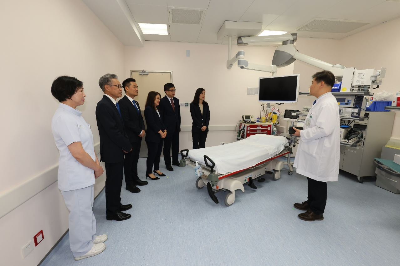 出席揭幕仪式的嘉宾在卫生局代表陪同下,详细参观了中心内的各项设施。中心从“以人为本”理念出发,在多个层面作出优化。首先,中心把胃肠科、肺科、耳鼻喉科、泌尿科等不同专科的内窥镜检查于同一场所,实现统一工作流程,让患者从挂号、登记、诊疗、检查后的恢复观察以至收费,均可在中心内完成。其次,中心加强了镇痛及麻醉等辅助技术和设备配置,优化候诊环境,增设术后观察区域,从而全面提升居民的就医体验。第三,中心选址毗邻仁伯爵综合医院急诊部,可通过医院内部通道直达,亦可经若宪马路方向的正门进入,而中心正门设专用车道,邻近公共巴士站及公众停车场,居民就诊时更便利。第四,中心可为急诊部提供更便捷的内镜和微创诊疗服务,同时配合急诊部的人力资源和技术支援,提升诊疗安全性;而中心亦能更便利地使用急诊部的X光设备、电脑断层扫描仪及血管造影室等设施。透过资源共享有效地提升专科诊疗能力。