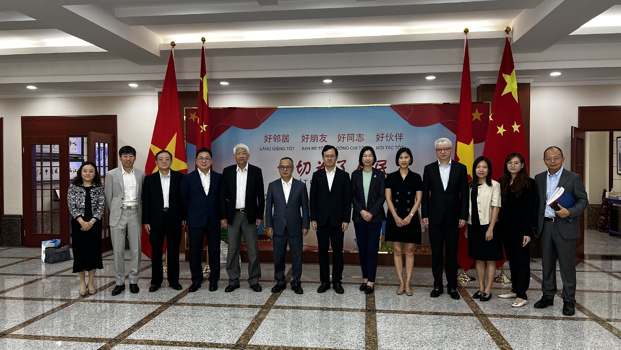 由澳门大学校长宋永华担任团长、澳门理工大学副校长李雁莲担任副团长的越南参访团首先拜访中华人民共和国驻胡志明市总领事馆,向代总领事徐州介绍了澳门在粤港澳大湾区中的独特角色,以及院校的办学和课程优势,期望领事馆协助于当地推广,吸引更多优秀国际人才来澳深造。参访团亦访问了胡志明市科技教育大学和胡志明市华文教育辅助会,进一步巩固和扩展两地高等院校及教育团体的合作关系,推进两地在高等教育领域的交流与协作。