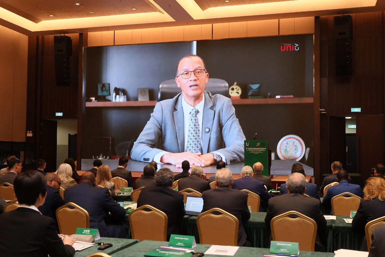 葡萄牙语大学联会主席José Arlindo Barreto以视频致辞,表示葡萄牙语大学联会旨在促进葡语国家和地区大学与高校之间的合作和资讯交流,澳门作为连结中国与葡语国家之间的桥梁,已成为推动中葡高校合作与交流的不可或缺的部分。