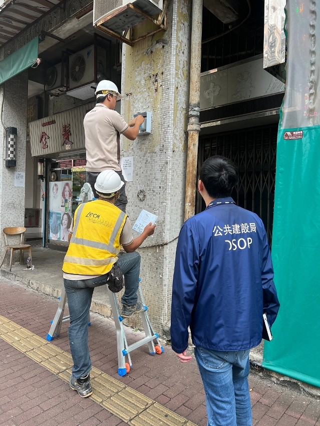 由于夹心房屋工程范围毗邻区内楼龄较大的楼宇,为确保施工过程中周边建筑物的安全,本局已聘请第三方机构对周边楼宇及道路进行全面监测,已展开前期楼宇状况勘察工作,包括对邻近的楼宇进行3D雷射扫瞄、外墙表面状况拍摄记录以及安装楼宇沉降、振动和倾斜度的监测设备等。项目的基础及地库工程将于近日进行工程委托,并随即围敝工程范围及动工,临时休憩区将停止使用。