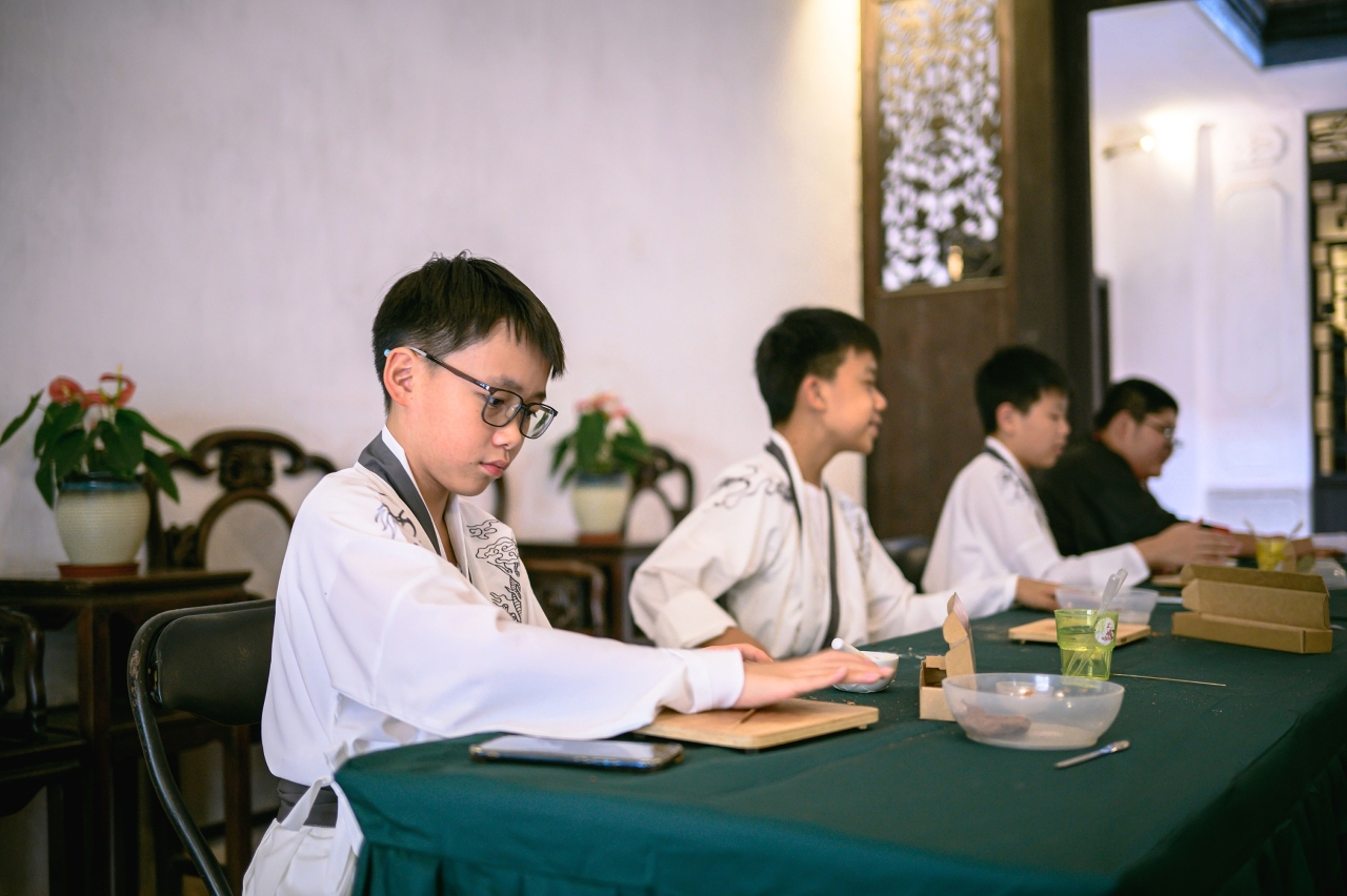 学员的学习内容丰富,涵盖书籍装订及檔案整理、澳门文化遗产及历史、考古及博物馆知识、视觉艺术鉴赏、剧场探索、文化传播概念及演讲技巧等,亦透过导赏观摩、欣赏演出、实地参观及出外交流等活动体验,多角度体验不同领域的文化艺术。学员日前亦参与了郑家大屋“中华文化体验日”活动,身穿汉服学习手搓线香、纸艺、书法、钉金锈手工制作等技巧,体验国家级非物质文化遗产粤剧,并就文化传承创新进行讨论及积极发表意见。