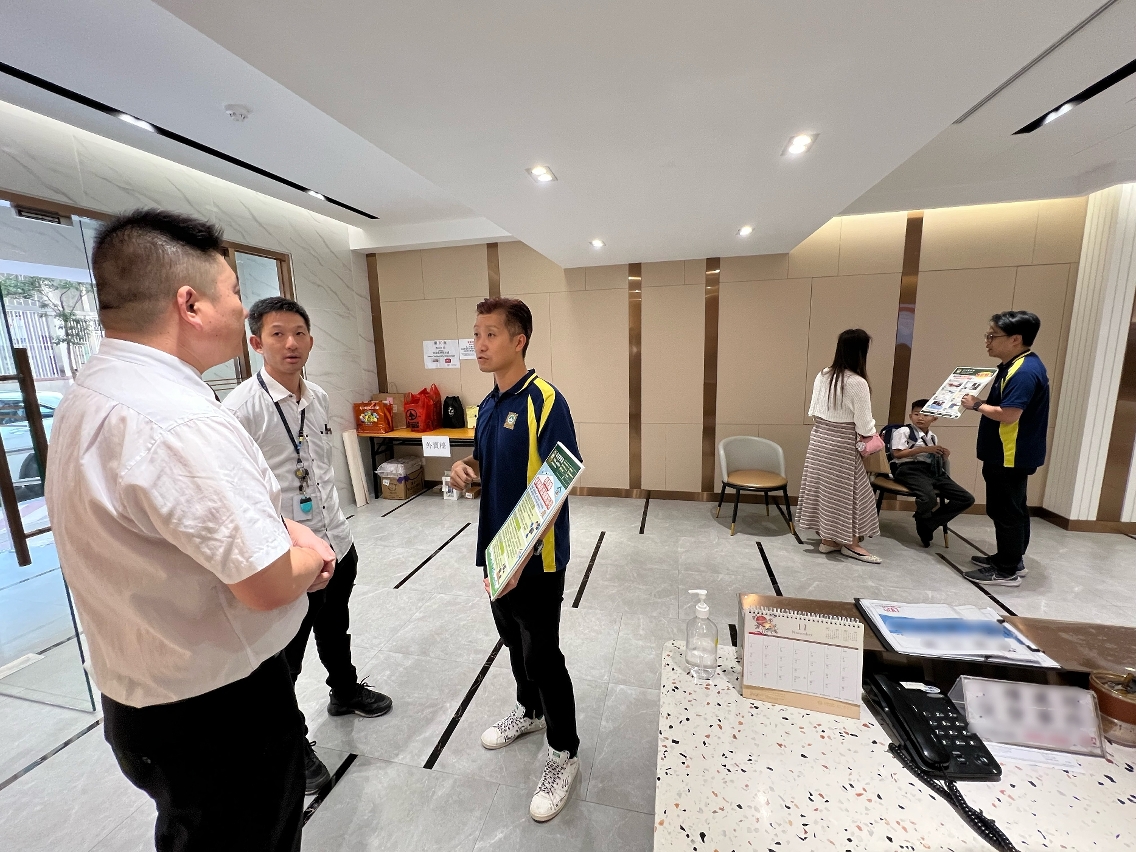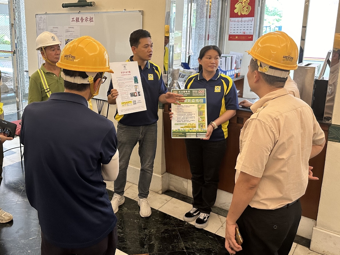 为推动大厦住户主动参与大厦防罪,司警局人员于进行棚架工程的大厦及邻近楼宇展开家居防盗宣教工作,向居民教授简单实用的家居防盗办法和要点,并呼吁他们经常做好家居防盗措施,时刻保持警惕并与邻里守望相助;如发现可疑情况或遇到犯罪,应在确保自身安全的情况下尽快报警求助。
