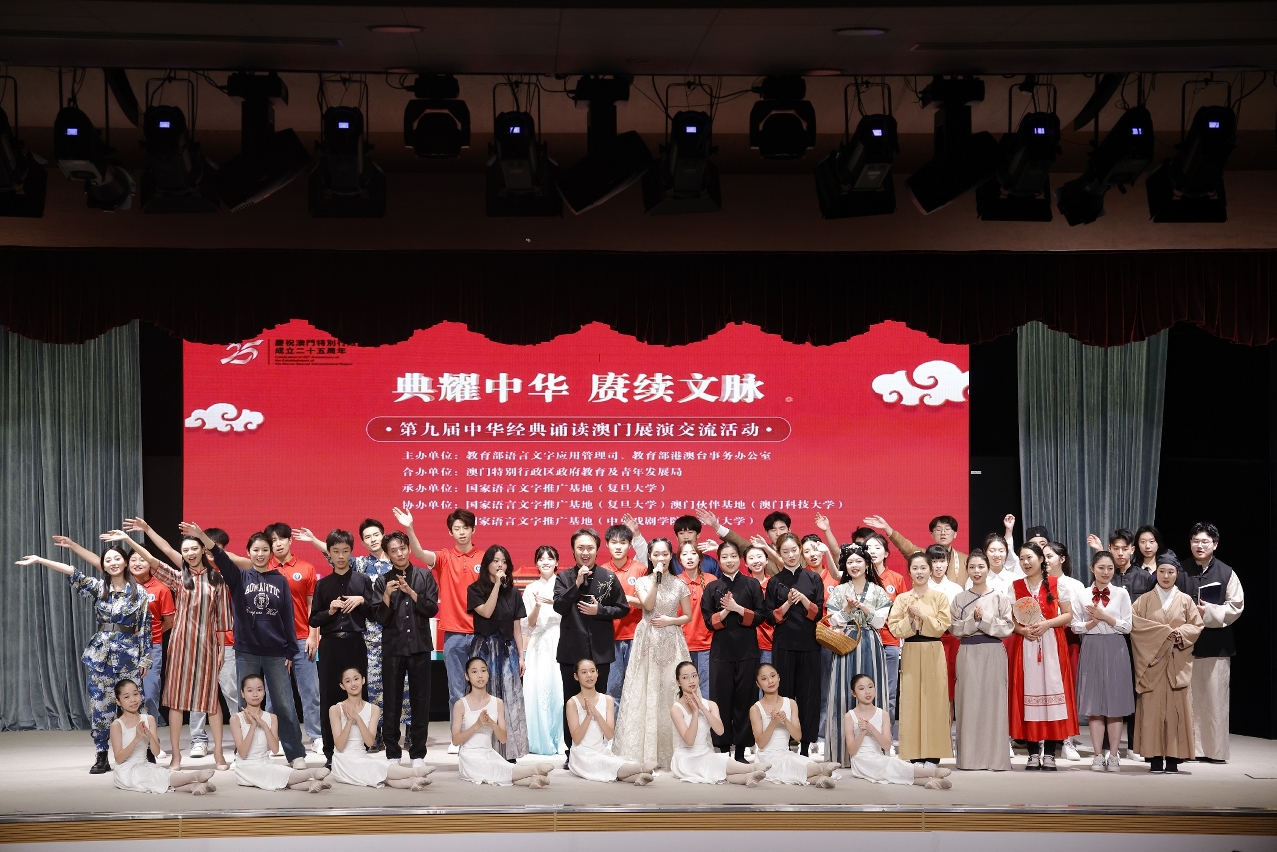 由国家教育部语言文字应用管理司、港澳台事务办公室主办,教育及青年发展局合办,国家语言文字推广基地(复旦大学)承办的“第九届中华经典诵读澳门展演交流活动”于2024年11月21日假澳门科技大学举行。国家教育部语言文字应用管理司副司长王晖、教育及青年发展局局长龚志明、中央人民政府驻澳门特别行政区联络办公室教育与青年工作部副部长李勇先、澳门科技大学副校长庞川、澳门中华教育会副理事长吕绮颖、澳门高等教育发展促进会长莫启明、澳门天主教学校联会理事长刘丽妹、澳门公职教育协会监事长谭可珍等,以及澳门各中小学学校代表及逾四百名师生出席。