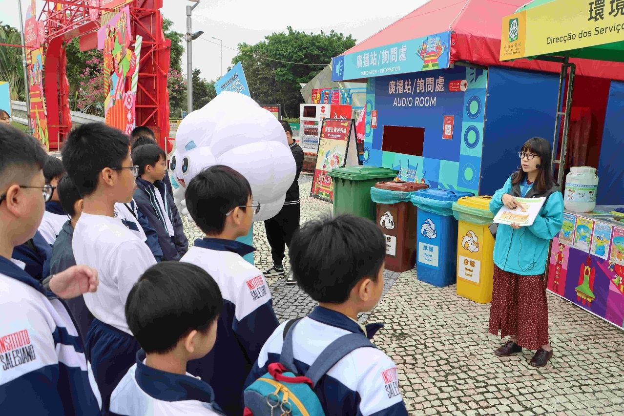 环境保护局举办「环境保护局吉祥物与您畅游美食节」活动,组织了绿色学校慈幼中学约三十位师生及家长于澳门美食节,共同实践减少使用一次性餐具、资源垃圾分类回收、厨余回收、惜食等低碳行为。