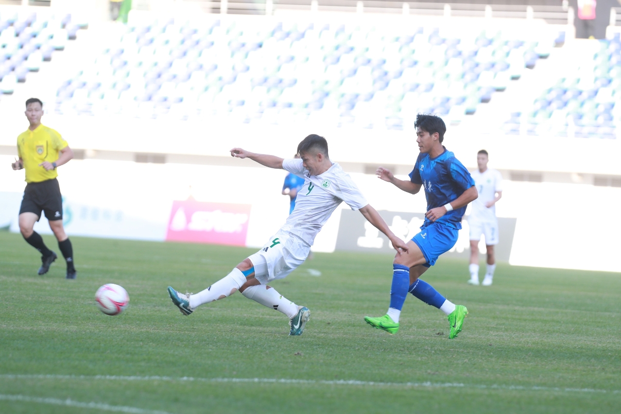 澳门队首回合主场0比0,第二回合作客出赛,上半场广东队积极抢攻,澳门队奋力防守亦取得不少攻势,上半场广东队开任意球头顶进球,先开1比0,接后澳门队前锋梁智诚入球,追平1比1,上半场补时阶段,澳门球员在禁区犯手球,被罚12码,上半场广东领先2比1。