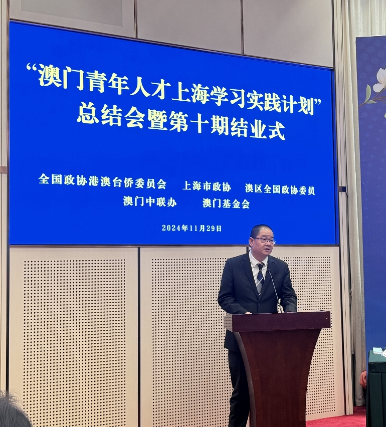 由全国政协港澳台侨委员会、上海市政协、澳区全国政协委员、中央人民政府驻澳联络办公室和澳门基金会共同主办的2024年“澳门青年人才上海学习实践计划”,已于2024年11月29日举行结业式。主办单位感谢学员们的参与和投入,为两地架起沪澳交流的亲善桥梁,更好地服务社会、贡献国家。