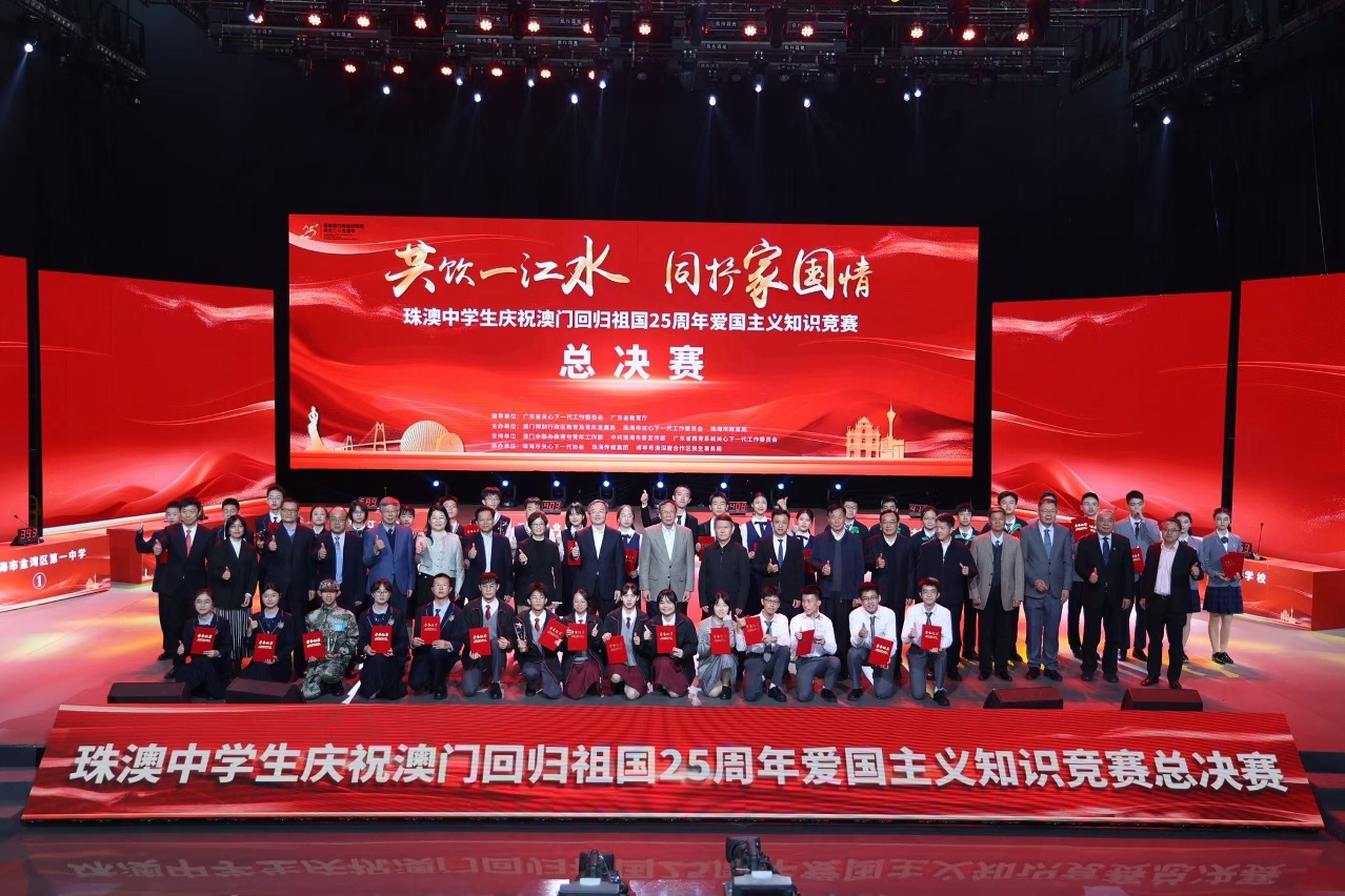 适逢中华人民共和国成立75周年及澳门特别行政区成立25周年,在广东省关心下一代工作委员会和广东省教育厅的指导下,珠海市关心下一代工作委员会、珠海市教育局与澳门教育及青年发展局共同筹办“珠澳中学生庆祝澳门回归祖国25周年爱国主义知识竞赛”,并于12月14日至15日举行总决赛及交流活动。竞赛以“共饮一江水,同抒家国情”为主题,旨在推进珠澳两地学子相互交流,加深对爱国主义精神的理解和认识,传承和弘扬爱国精神,厚植家国情怀。