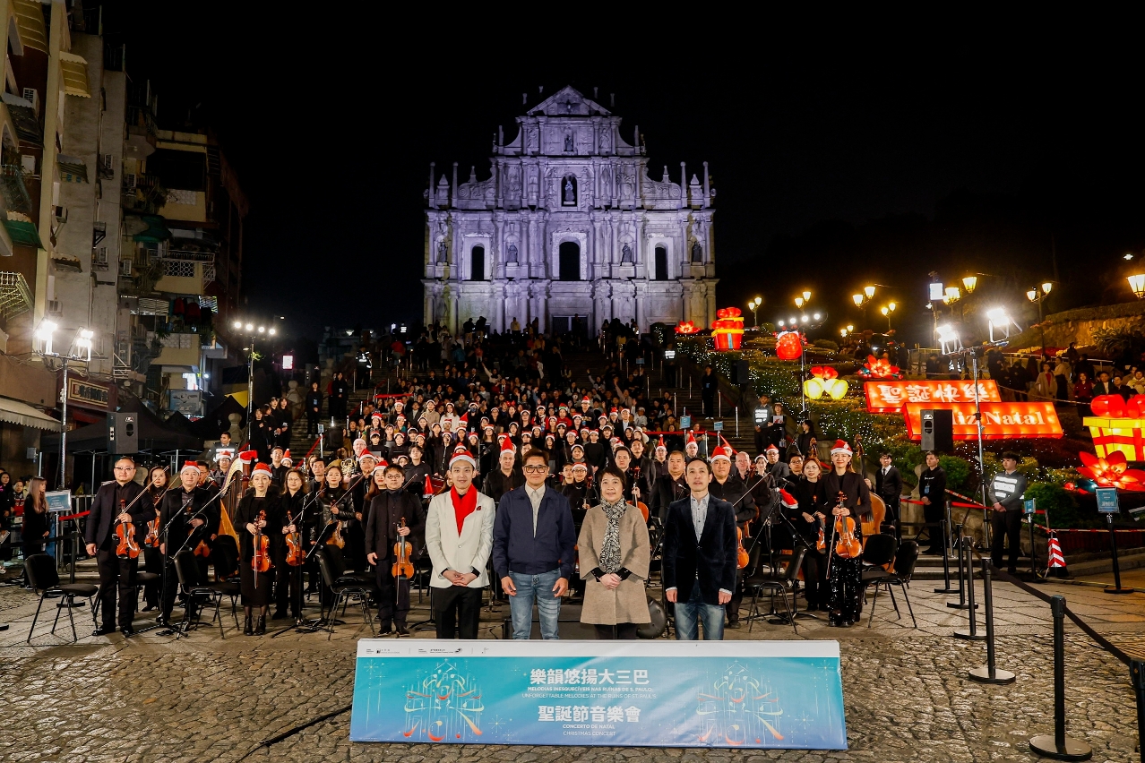由文化局主办、澳门乐团有限公司承办的“乐韵悠扬大三巴”音乐会,于12月25日圣诞节傍晚在世遗景点大三巴牌坊演出两场,吸引大批市民与旅客欢聚聆听,现场气氛温馨,活动同时透过多个平台直播,让更多观众观赏演出,感受佳节气氛。