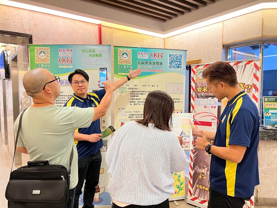 此外,司警局人员还向居民推广使用司警局的“反诈程式”和介绍局方报案程序,以及解答他们对警务工作的疑问,并呼吁他们将有关防罪资讯分享给邻里亲友,共同加强防罪意识及能力,警民合作防范罪案发生。