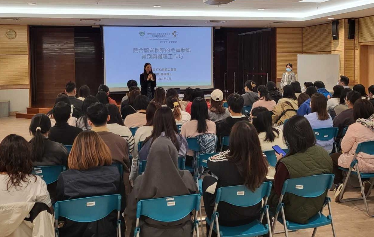 为提升本澳院舍医护人员的照护质素,提升应对突发事件的能力,从而为服务使用者提供更优质的照护服务,社会工作局联同卫生局于1月9日举行了“院舍体弱个案的危重识别与护理工作坊”,约70名院舍医疗人员参与是次培训。