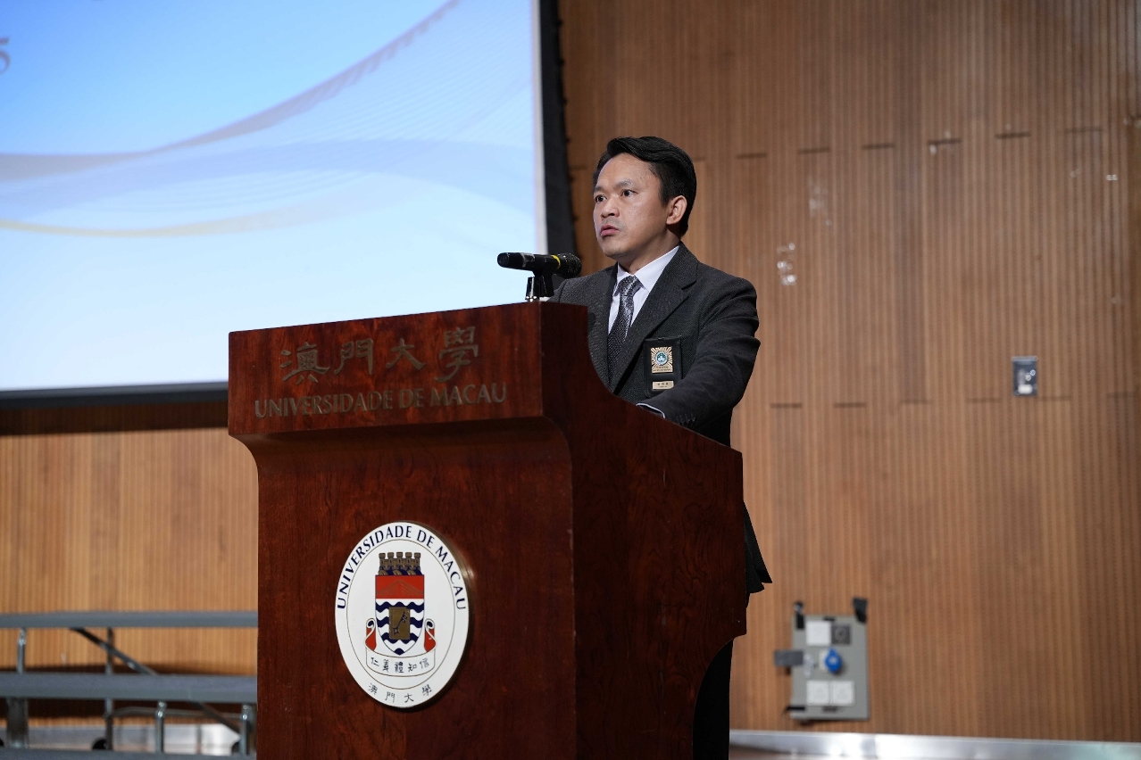 苏兆强致辞时衷心感谢澳大的积极配合。他表示,随着近年电讯和网络诈骗案件的激增,尤其是2023年电话及网络诈骗案件数量创新高,对学生的影响尤为明显。为了应对这一挑战,司法警察局投入资源加强校园反诈骗工作,并联同教育及青年发展局于2024年推出“校园防骗疫苗计划”,以提升学生的防骗意识。初步统计显示,2024年电话诈骗案件已显着减少。虽然情况令人鼓舞,司法警察局面对持续的诈骗威胁,将继续加强与教育及青年发展局及各高校的合作,推进防骗宣教工作,并期待新任防骗大使能在校园内发挥影响力,促进防骗信息的传播。