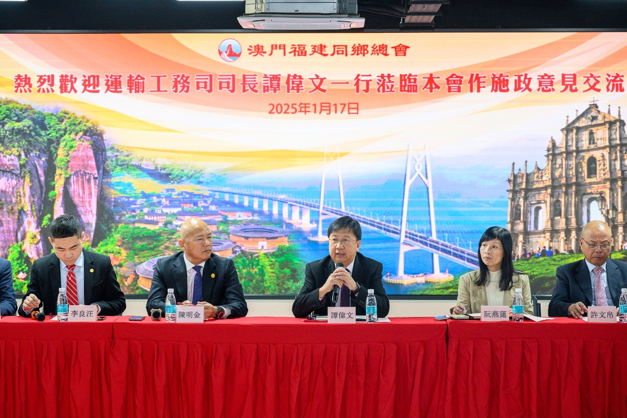 运输工务司司长谭伟文今(17)日继续拜访社团,上午与澳门福建同乡总会举行座谈会,就编制运输工务范畴本年度施政方针听取意见和建议。