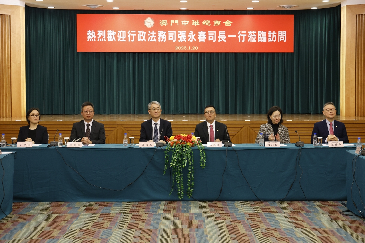 行政法务司司长张永春今(20)日到访澳门中华总商会并举行座谈,就编制行政法务范畴本年度施政方针听取该会的意见和建议。