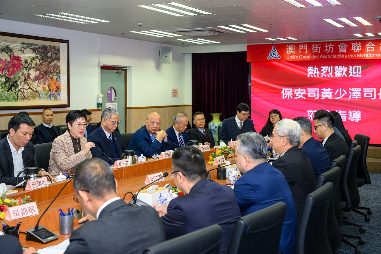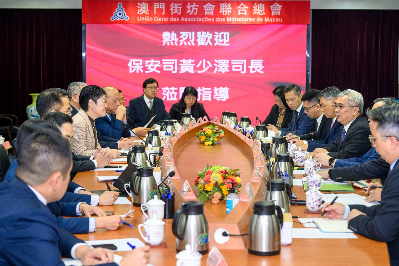 保安司司长黄少泽今(20)日拜访澳门街坊会联合总会并举行座谈,就编制保安范畴2025年度施政方针听取意见和建议。
