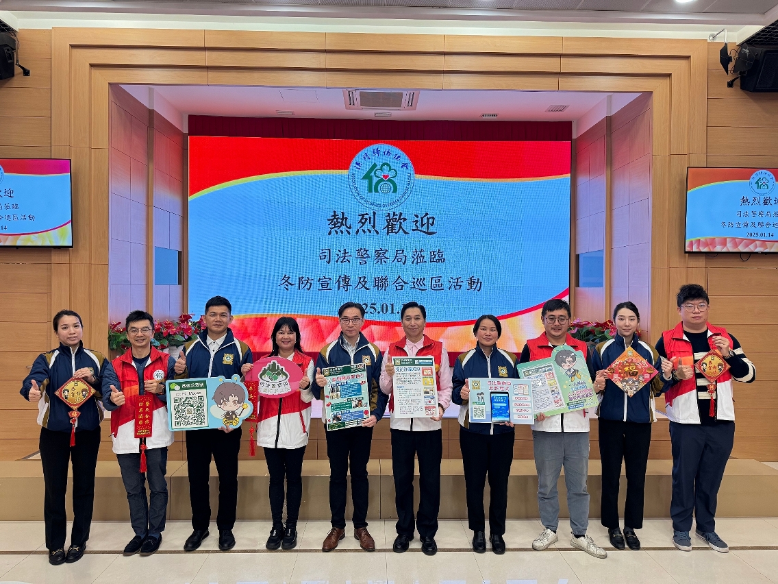 年近岁晚,为预防罪案发生,司法警察局在警察总局统筹下,联同多个社团代表及“司警局大厦防罪之友"成员前往本澳各区进行冬防宣传,向市民、商户及物业管理人员等讲解防罪资讯,提醒他们做好防罪措施,警民合作共护社区安宁。