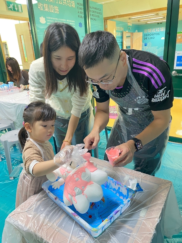 其中,于2024年11至12月期间,市政署于望厦山环境资讯中心举办了10场名为“DIY创意KABO公仔工作坊”的活动,以澳门城市清洁运动吉祥物KABO为原型,让参加者透过亲子合作,使用多种流体画颜料创作出独一无二的KABO公仔,共吸引近250人参加。