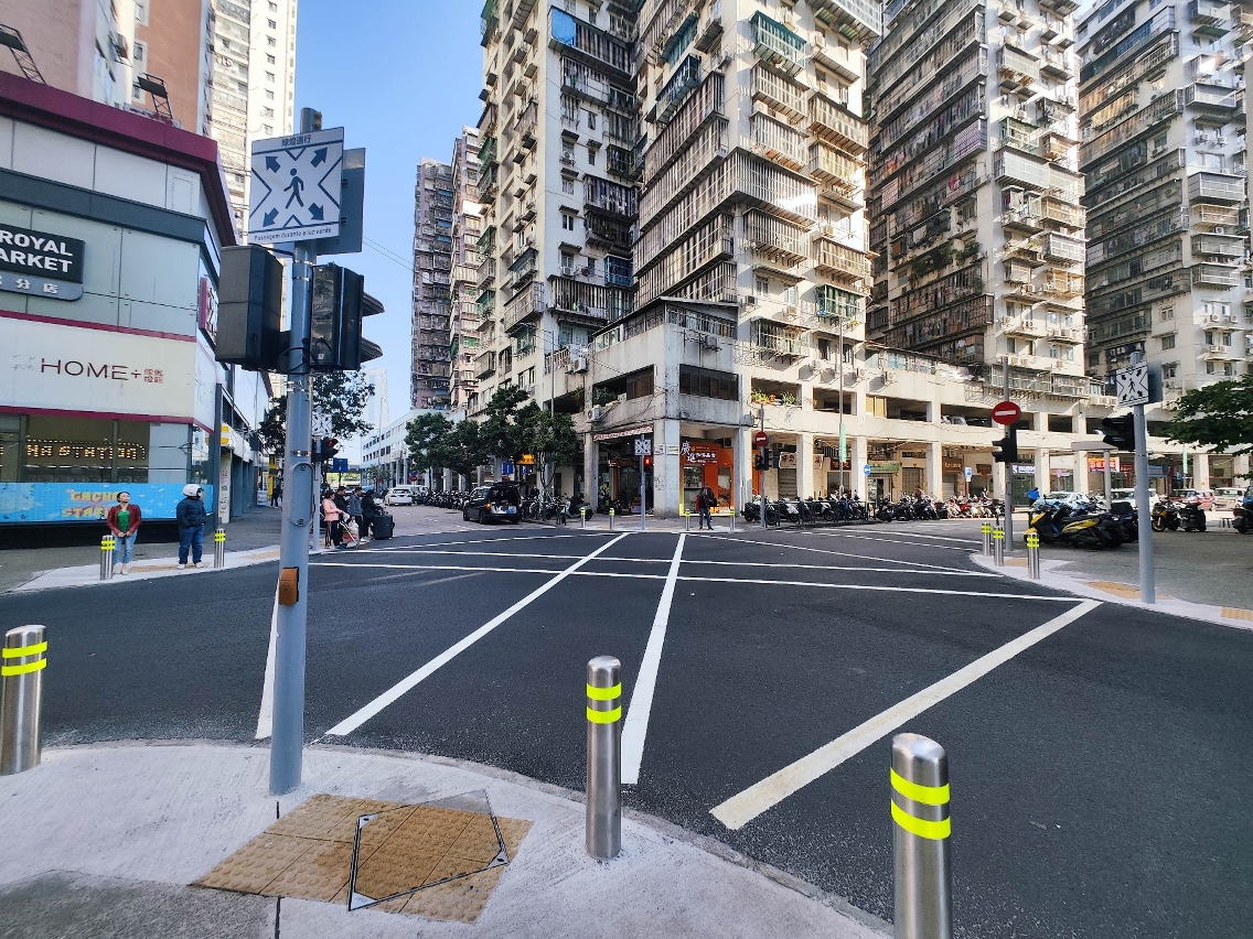 为进一步优化过路环境及保障行人安全,交通事务局经检视长寿大马路与看台街及马场大马路交界现时的交通情况、道路条件并与相关学校沟通后,上述两路口在现有交通灯号控制下增设全向行人过路设施。有关设施已于今(25日)上午正式启用。