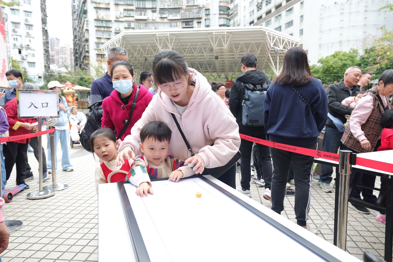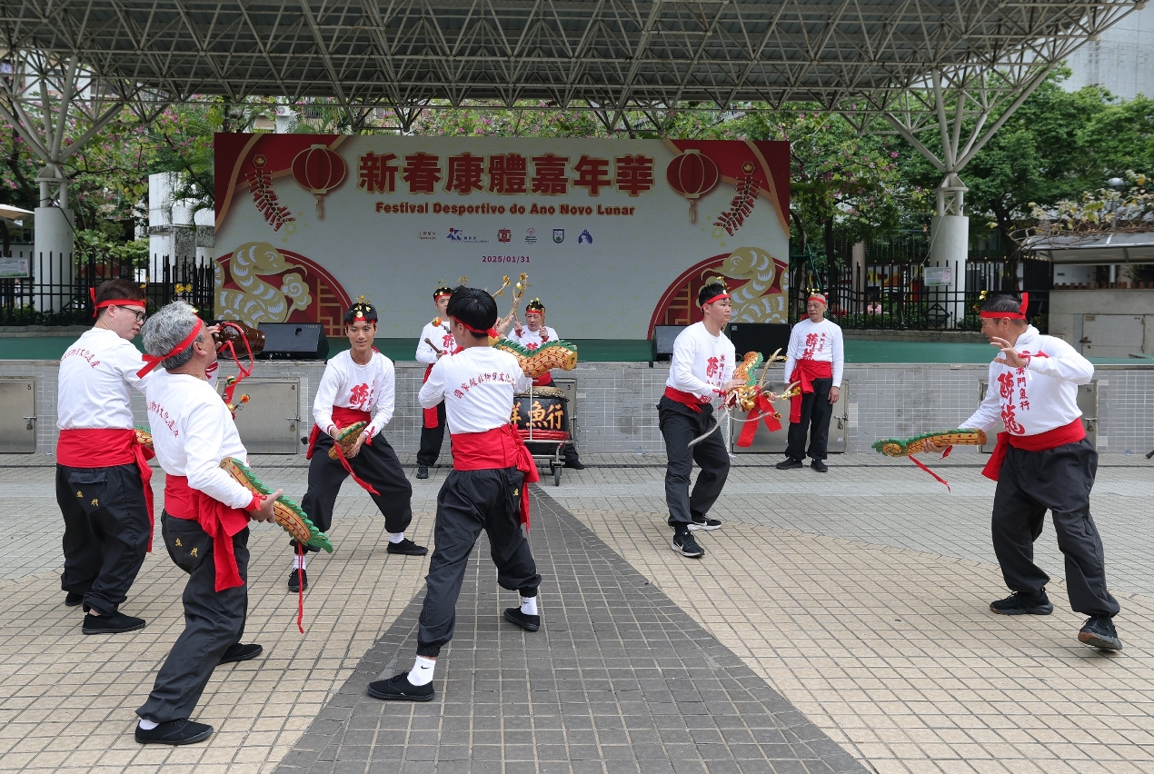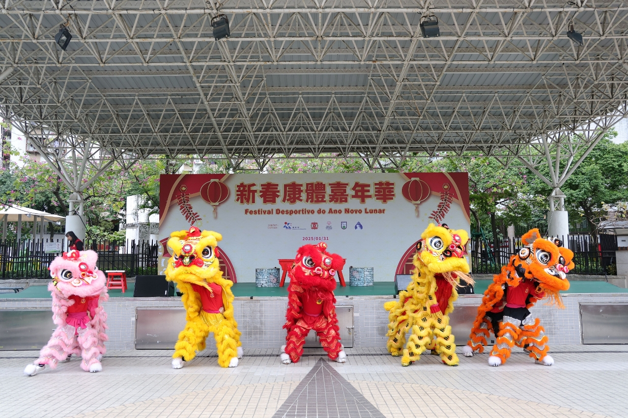 由体育局与澳门工会联合总会体育委员会、澳门特殊奥运会、中国澳门残疾人奥委会暨伤残人士文娱暨体育总会及澳门聋人体育会共同举办的“新春康体嘉年华”于下午2时至5时在佑汉街市公园广场举行。现场除了贺年特色摊位游戏,更有龙狮源流文化介绍、龙狮献瑞表演、舞醉龙表演,及残疾人士体育表演。此外,为迎接将于本年11月9至21日举办的第十五届全国运动会(全运会),现场特别增设了与全运会相关之有奬问答游戏、认识澳门全运会参加项目的摊位游戏,藉着全运会的契机推动大众体育,让更多公众在大众体育活动中了解全运会的资讯。新春康体嘉年华为市民送上新春祝福及增添喜庆节日气氛,场面热闹。