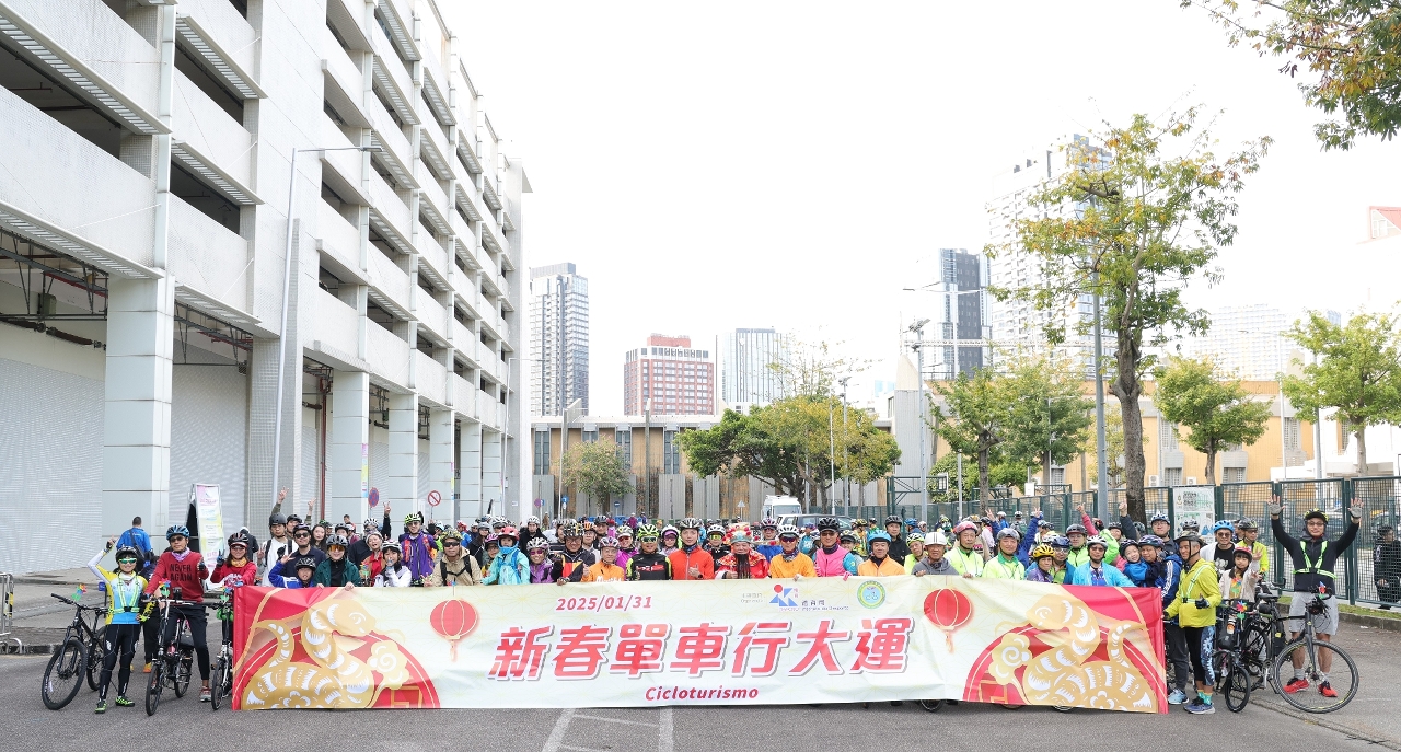 由体育局与中国澳门单车总会共同主办的 “新春单车行大运” 于上午举行,车队在上午9时于奥林匹克体育中心三人篮球场侧空地出发,途经氹仔区、金光大道、最后于终点站氹仔海滨休憩区结束,全程约20公里。活动吸引约300名市民参与,参加者除了单车爱好者,亦有不少父母带同子女进行亲子单车游体验,场面既温馨又热闹。