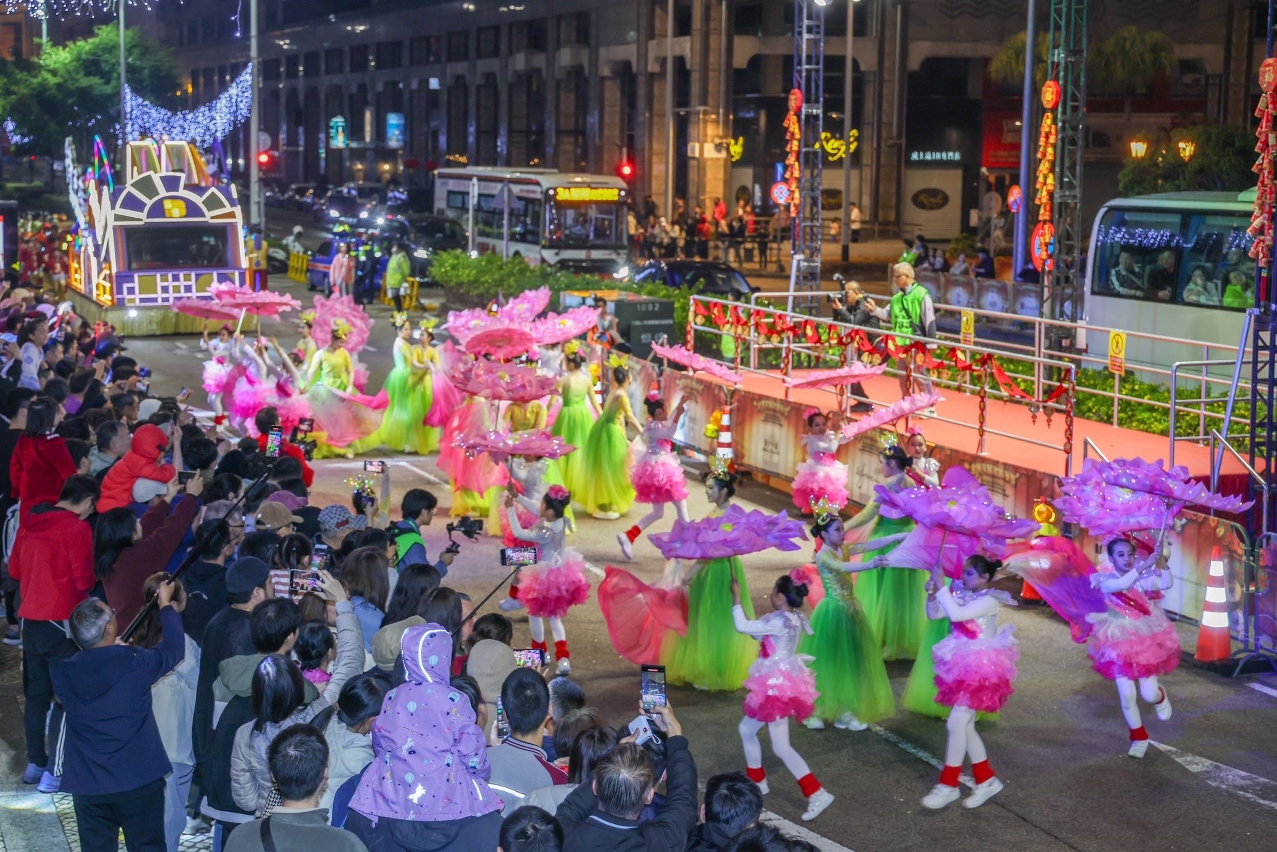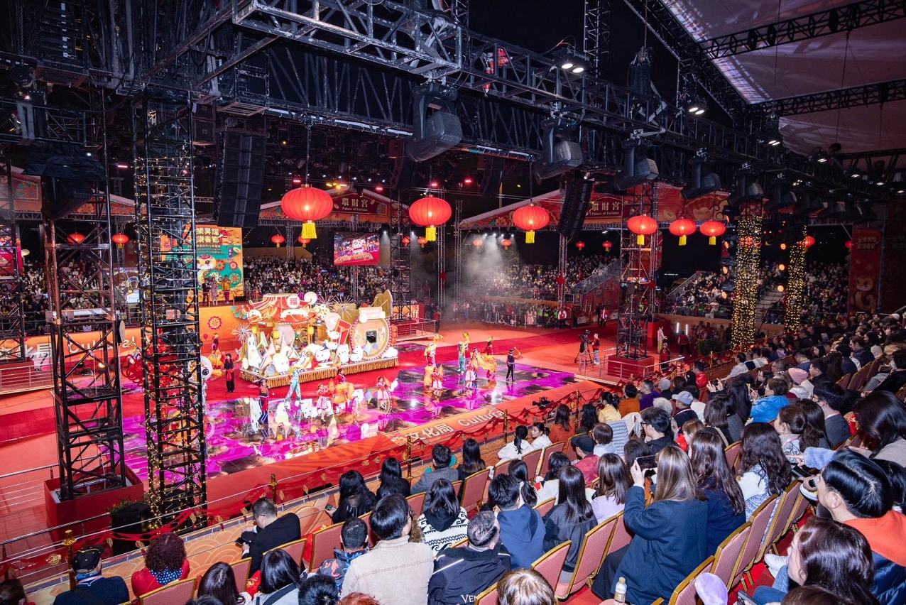 港澳人气主持人周奕玮、古淖文与宋宛颖担任司仪,香港艺人张振朗、丁子朗和姚焯菲等倾力献唱。17部花车与来自海内外约1,300名表演者一一亮相,压轴登场的旅游局花车更首次在主舞台中央进行360度展示,让观众全方位欣赏花车的精心设计,加上香港歌手魏浚笙和女子组合Beanies的精彩表演,将现场气氛推至高峰。熠熠生辉的花车按路线巡游,加上艺团精彩表演,沿途获居民和旅客热烈欢迎。