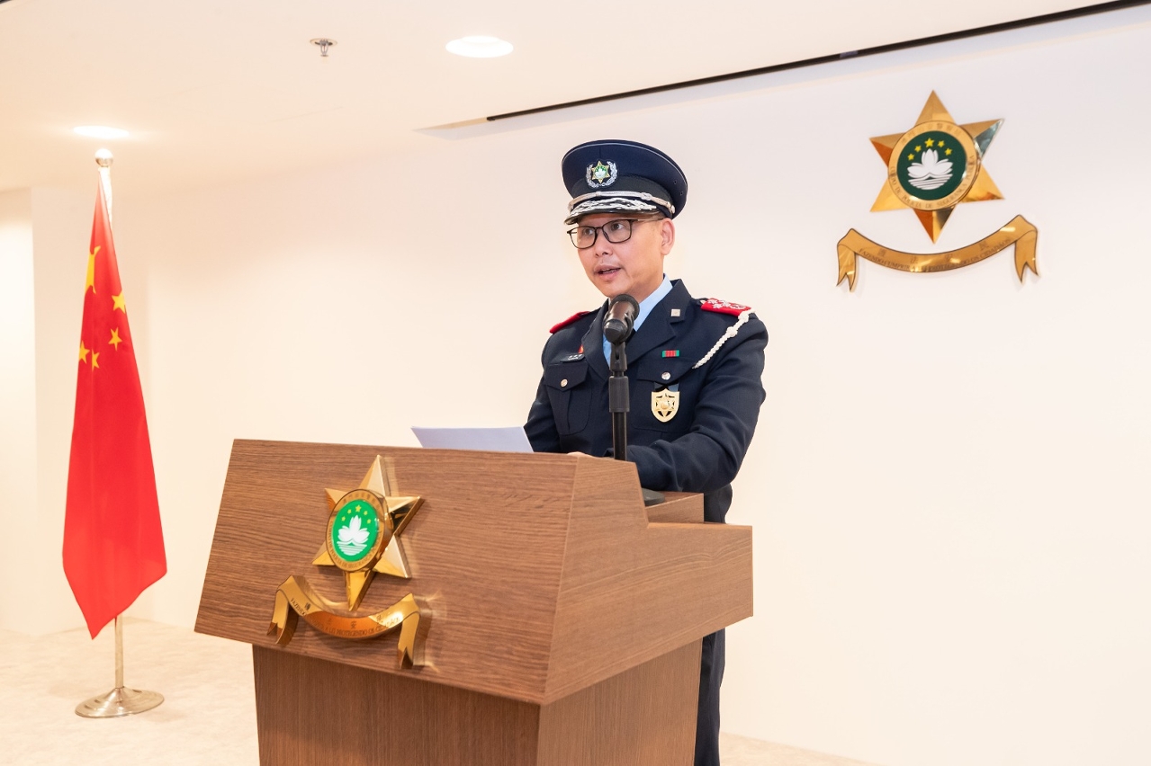 吴锦华局长在仪式上祝贺获晋升的警官,并对他们过往的工作表现予以肯定;同时勉励他们要坚守初心,牢记使命,严格履行法定职责,树立大局意识,强化实干担当,坚定不移地配合特区政府的各项工作,坚持忠诚为民、守法奉公、勇于创新,持续提升治安警管理水平,以更积极主动的姿态防范各类危害国家安全和社会稳定的风险隐患,全力维护国家安全,以及为澳门长治久安保驾护航。