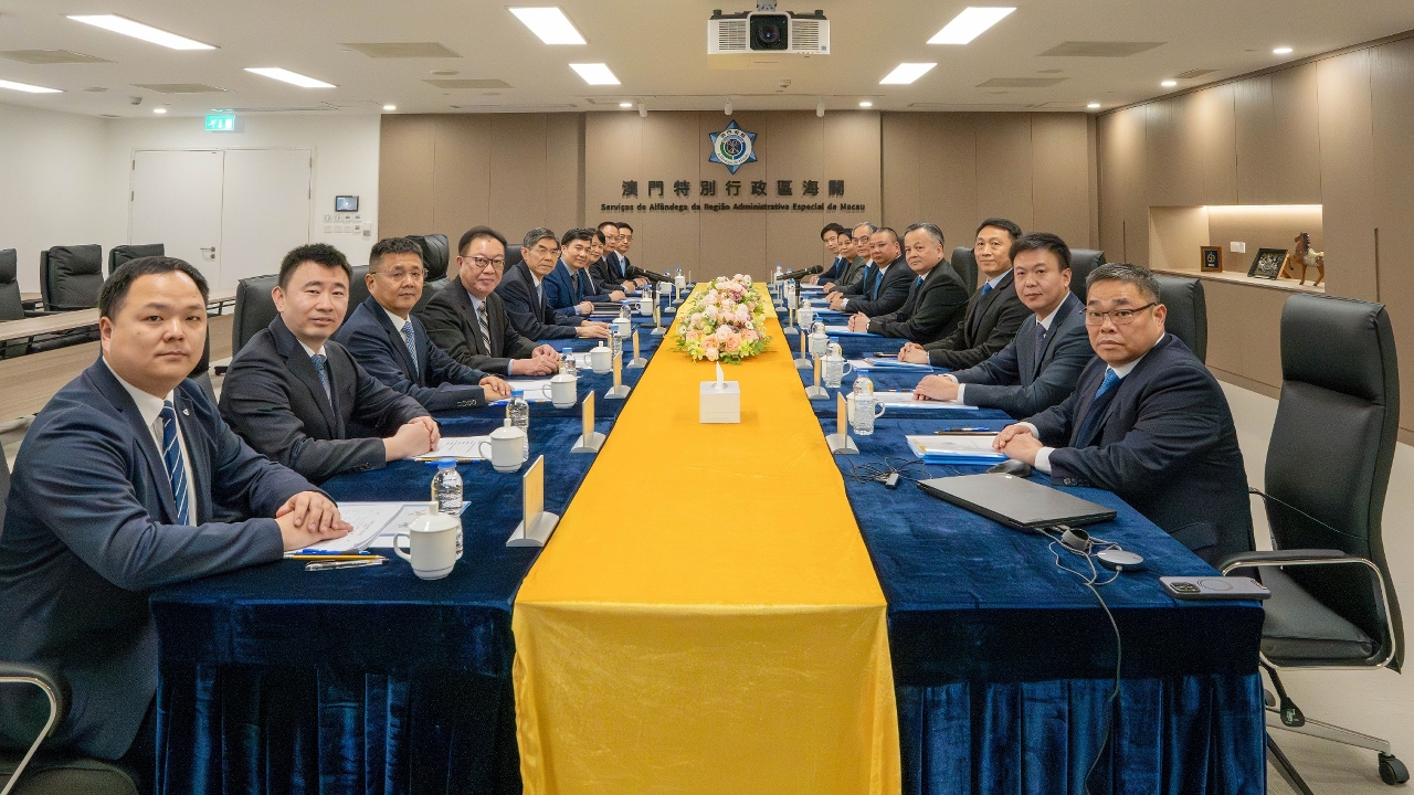 海关总署副署长王令浚率团到访澳门海关总部,与海关关长何浩瀚等人员举行是次会议。