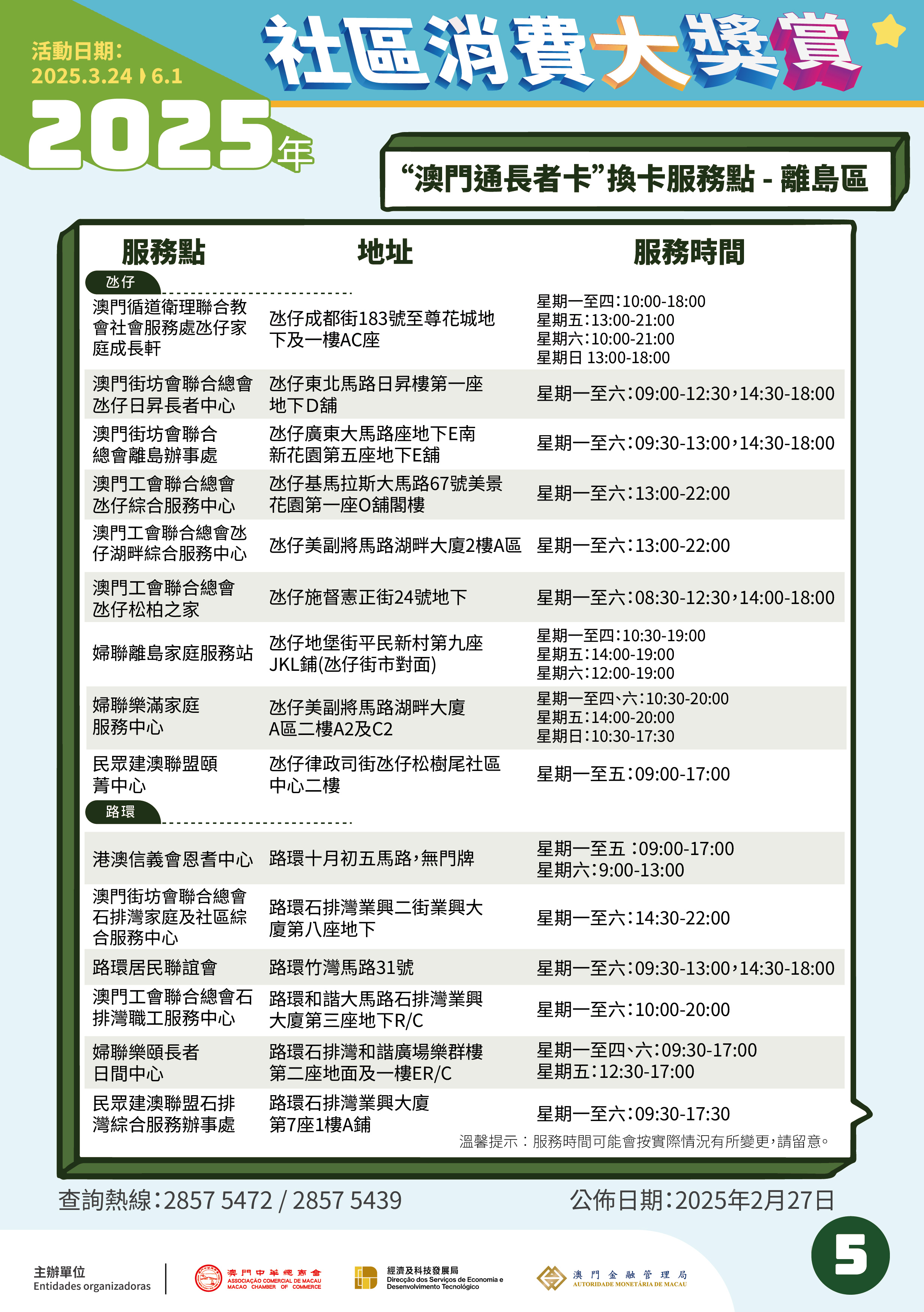 如对“2025年社区消费大奬赏”有任何查询,居民可在办公时间致电查询热线2857 5472或2857 5439。