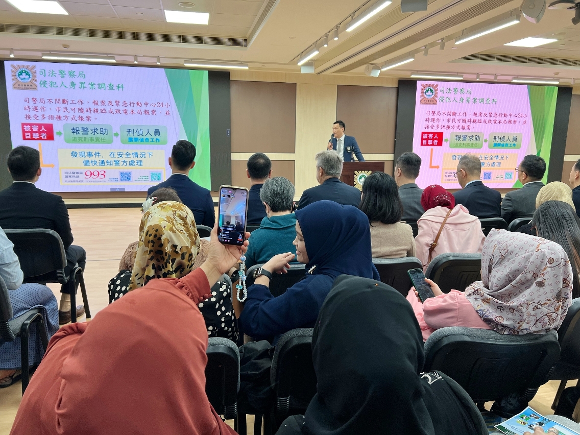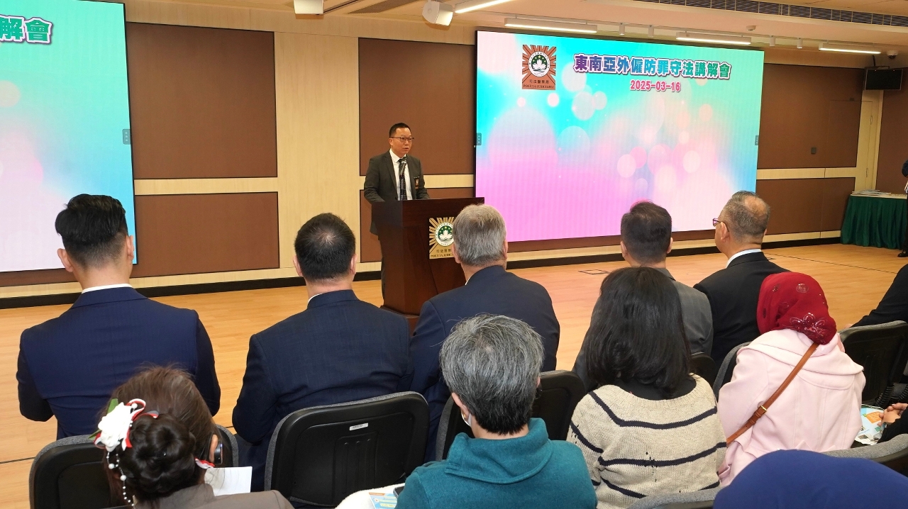 为提升本澳外地雇员的防罪守法意识,司法警察局联同澳门海外越南同胞协会、澳门缅华总会及澳门外劳职业中介协会等外雇社团,于3月16日在司法警察学校举办“东南亚外雇防罪守法讲解会”。活动旨在向本澳东南亚外雇群体普及澳门法律和防罪警务资讯,帮助他们避免误触法网或遭受犯罪侵害。