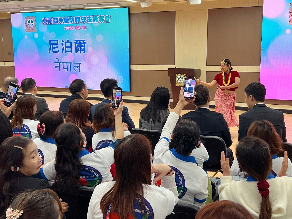 讲解会由司警局多个刑侦部门的资深刑事侦查人员主讲,内容涵盖禁毒、预防人口贩卖及清洗黑钱、录制或散播未成年人色情物品的法律责任,以及司警局的报案程序等防罪资讯。主讲人员即时解答外雇对警务工作的疑问,并鼓励他们如遇到或怀疑发生犯罪,应勇于向警方举报。此外,司警局人员还派发多语种防罪宣传单张,并呼吁他们将相关防罪资讯分享给同乡和朋友,共同提升防罪能力,警民携手共建安全、和谐的社区环境。活动现场气氛热烈,出席者还带来精彩的民族歌舞表演,为讲解会增添欢乐氛围。