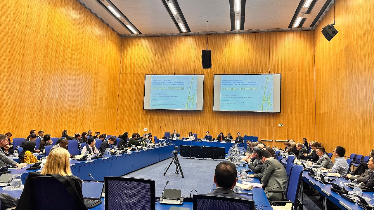 第68届联合国麻醉品委员会会议于3月10日至14日期间在奥地利维也纳举行,国家禁毒委员会副秘书长单叶骅率国家禁毒办、国家卫健委、国家药监局、香港和澳门特区,以及常驻维也纳代表团共同参会。司法警察局苏兆强副局长和李瀚妮职务主管、社会工作局郑耀达厅长和区宏添处长代表澳门特区随中国代表团参与会议。