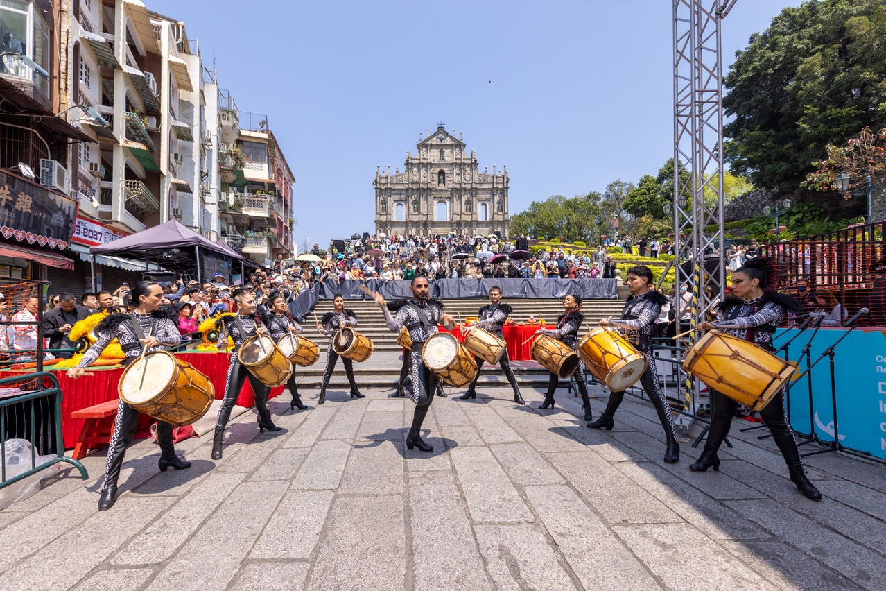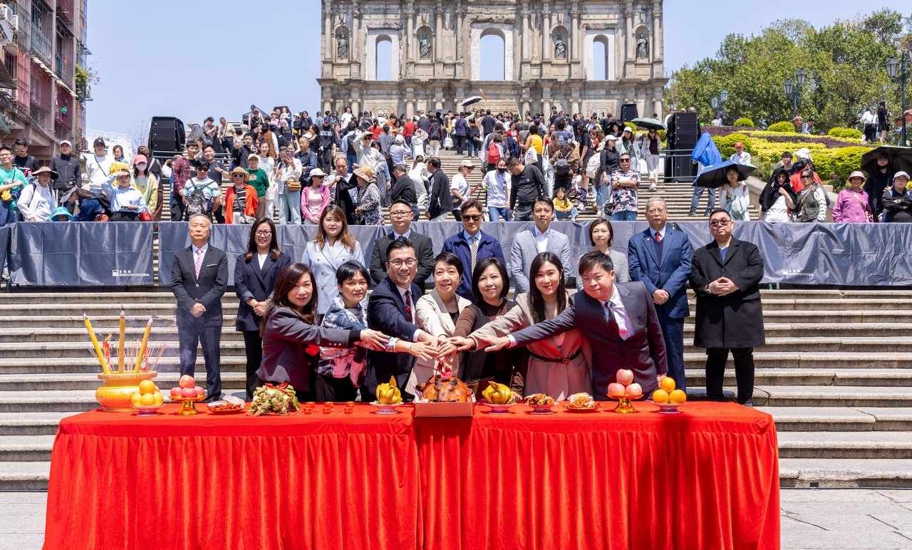 由文化局、澳娱综合度假股份有限公司、金沙中国有限公司、美高梅、银河娱乐集团、永利渡假村(澳门)股份有限公司及新濠博亚娱乐联合主办的庆祝澳门回归祖国二十六周年“2025澳门国际幻彩大巡游”将于3月23日举行,为祈愿活动顺利圆满,各单位代表今天(3月21日)在大三巴牌坊进行拜神仪式,并设醒狮表演,邀请参演艺团演出助庆,吸引众多市民及旅客围观欣赏,气氛欢愉。