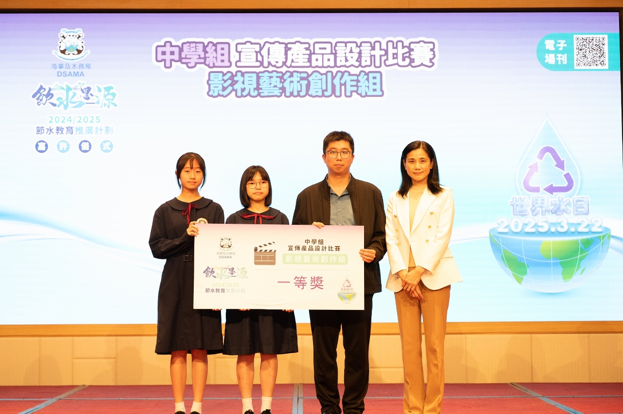 海事及水务局今日(22日)举行“2024/2025饮水思源节水教育推广计划”嘉许仪式,向得奖的学校及师生颁发奖项。