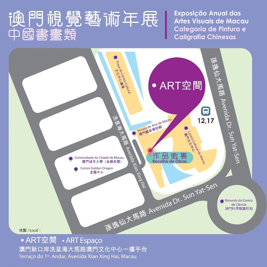 由文化局主办之2025年“澳门视觉艺术年展——中国书画类”将于5月9日至11日,在澳门文化中心“•ART空间”进行收件,征集中国书画类作品,包括国画、书法、篆刻及实验水墨创作等类别,欢迎本澳艺术家踊跃参加。