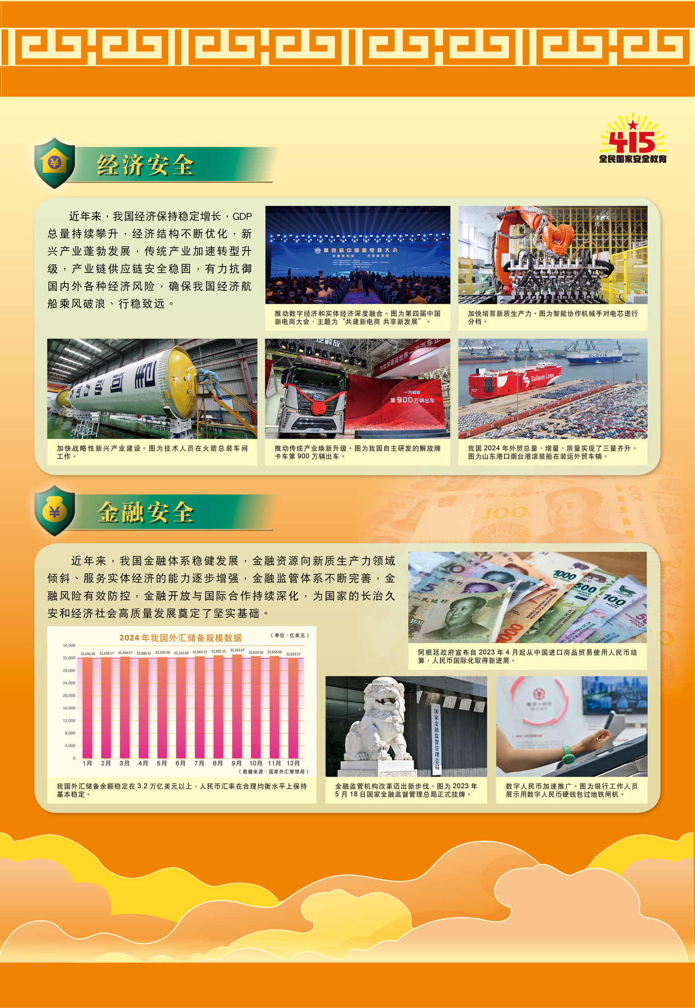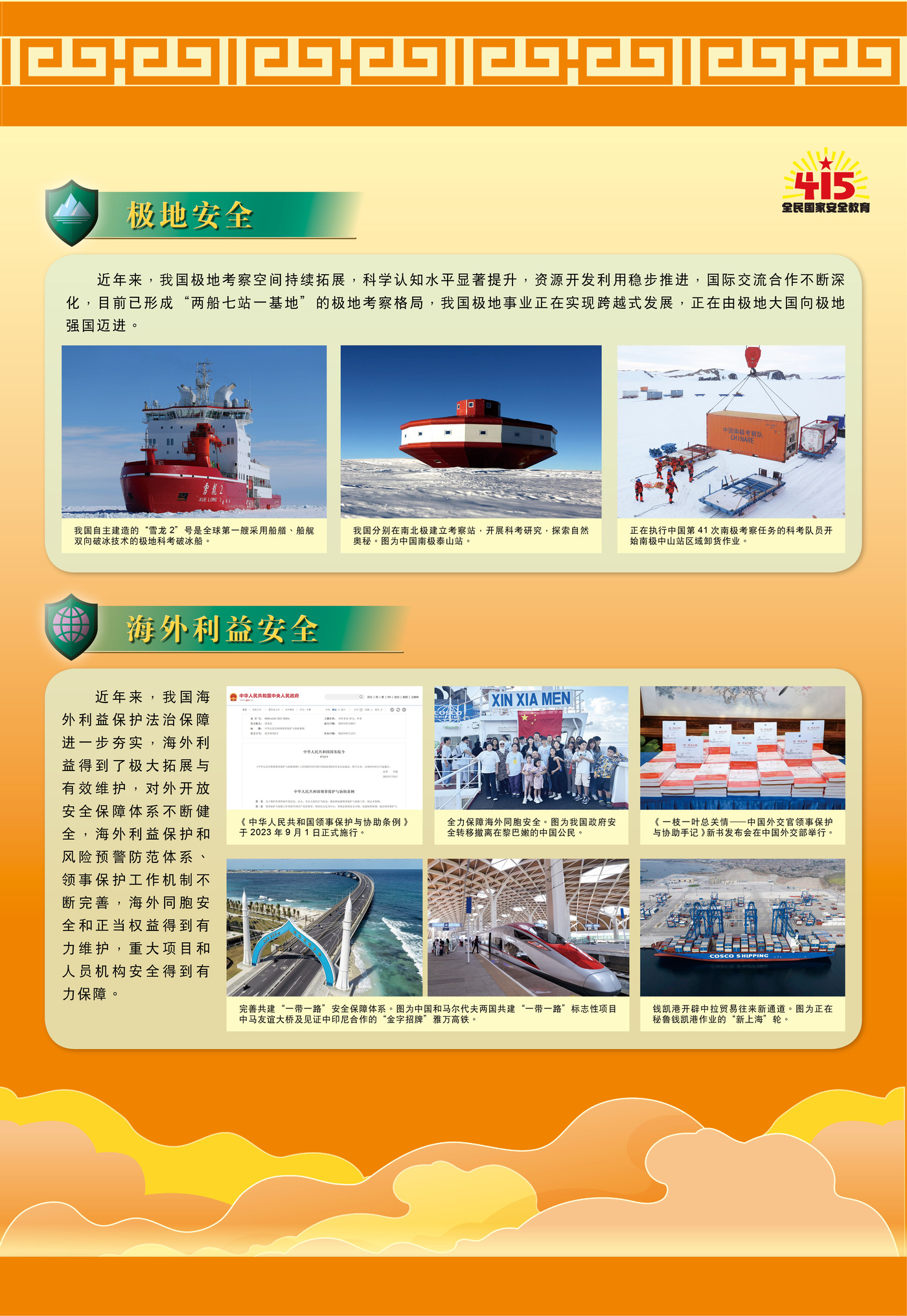 总体国家安全观涵盖20个环环相扣的重点领域,包括政治安全、军事安全、国土安全、经济安全、金融安全、科技安全、人工智能安全、网络安全、数据安全、社会安全、文化安全、粮食安全、生态安全、生物安全、资源安全、核安全、太空安全、深海安全、极地安全、海外利益安全;展览的第二部分阐述了国家保障各项领域安全上取得的显着进展。