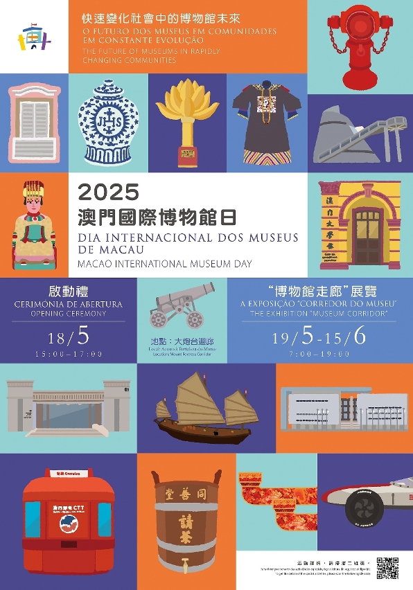 为响应“5‧18国际博物馆日”,澳门逾20间博物馆联合举办“2025澳门国际博物馆日”系列活动。这一文博界年度盛事的启动礼将于5月18日(星期日)下午3时在大炮台回廊举行,设有丰富展演及活动项目;5月23日(星期五)则在澳门大学举办大湾区博物馆发展交流会,欢迎公众参与。