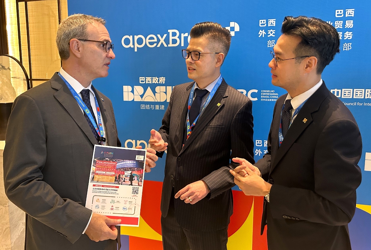 澳门招商局藉参与是次高规格经贸活动的契机,向多位中巴与会代表,包括巴西多个经贸部门、肉类领头企业、中国头部咖啡品牌企业等,推广澳门中葡平台的角色和优势,介绍10月将于澳门举办的“第二届中国—葡语国家经贸博览会(澳门)(2.ª C-PLPEX)”和“中葡商贸导航”服务如何助力企业拓展市场,以吸引企业用好澳门国际窗口和招商局中葡经贸资源,推动中国内地企业藉澳门作为平台“走出去”,并将巴西资源“引进来”,为区域经贸发展注入动能。