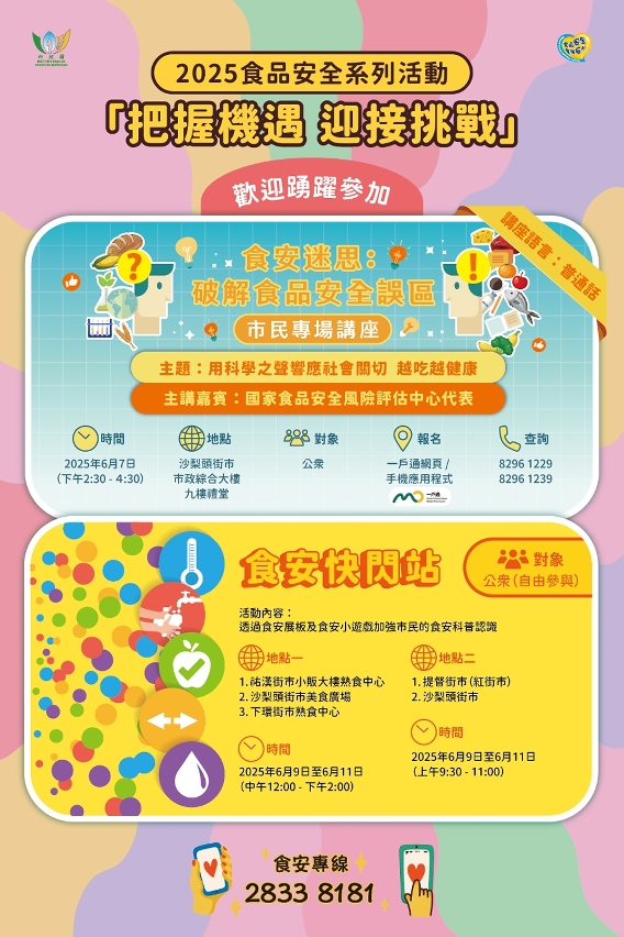 6月7日,市政署将举办“食安迷思─破解食品安全误区”市民专场讲座,特邀国家食品安全风险评估中心专家,从科学角度剖析常见饮食安全与营养健康问题,引导公众建立健康饮食习惯。有兴趣的市民可由即日起至6月3日,透过“一户通”网站或手机应用程式报名。