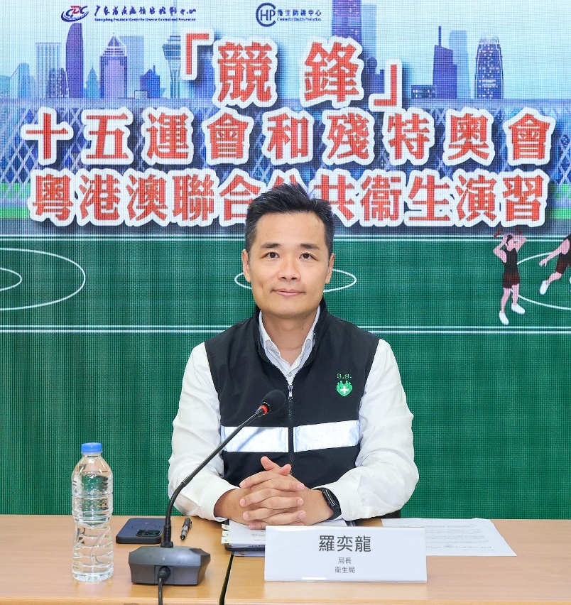 为做好今年11及12月粤港澳共同承办的第十五届全国运动会(以下简称十五运会)和全国第十二届残疾人运动会暨第九届特殊奥林匹克运动会(以下简称残特奥会)的准备及部署,进一步加强赛事期间的传染病联防联控能力,广东省、香港及澳门卫生部门今(11)日联合举行代号为“竞锋”的公共卫生演练。在国家规模最大、水准最高的综合性体育盛会举行前夕,联合开展公共卫生演练具有重大战略意义,为各项赛事顺利举行提供有力保障。
