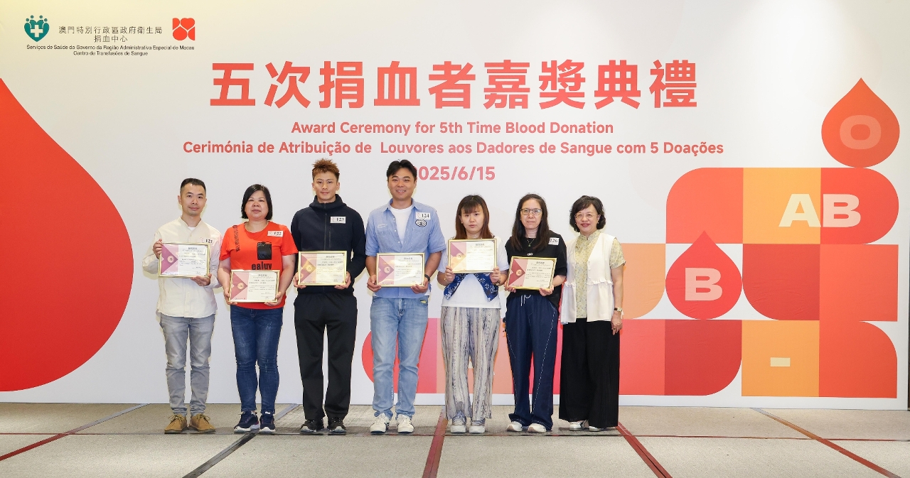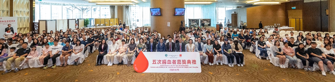 为响应世界卫生组织等国际组织倡议和发起的“世界捐血者日”活动,表达对捐血者的谢意及提醒公众自愿捐血的重要性,卫生局于“世界捐血者日”期间举办系列宣传及庆祝活动。昨(15)日举行了2025年“五次捐血者嘉奬典礼”,向2024年度1,018位捐血达5次的捐血者发出邀请,共有约380多人出席了典礼。