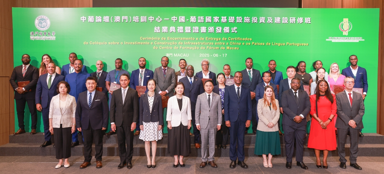 6月17日,由中国—葡语国家经贸合作论坛(澳门)常设秘书处主办的“中国—葡语国家基础设施投资与建设研修班”在澳门旅游塔举行结业典礼暨证书颁发仪式。