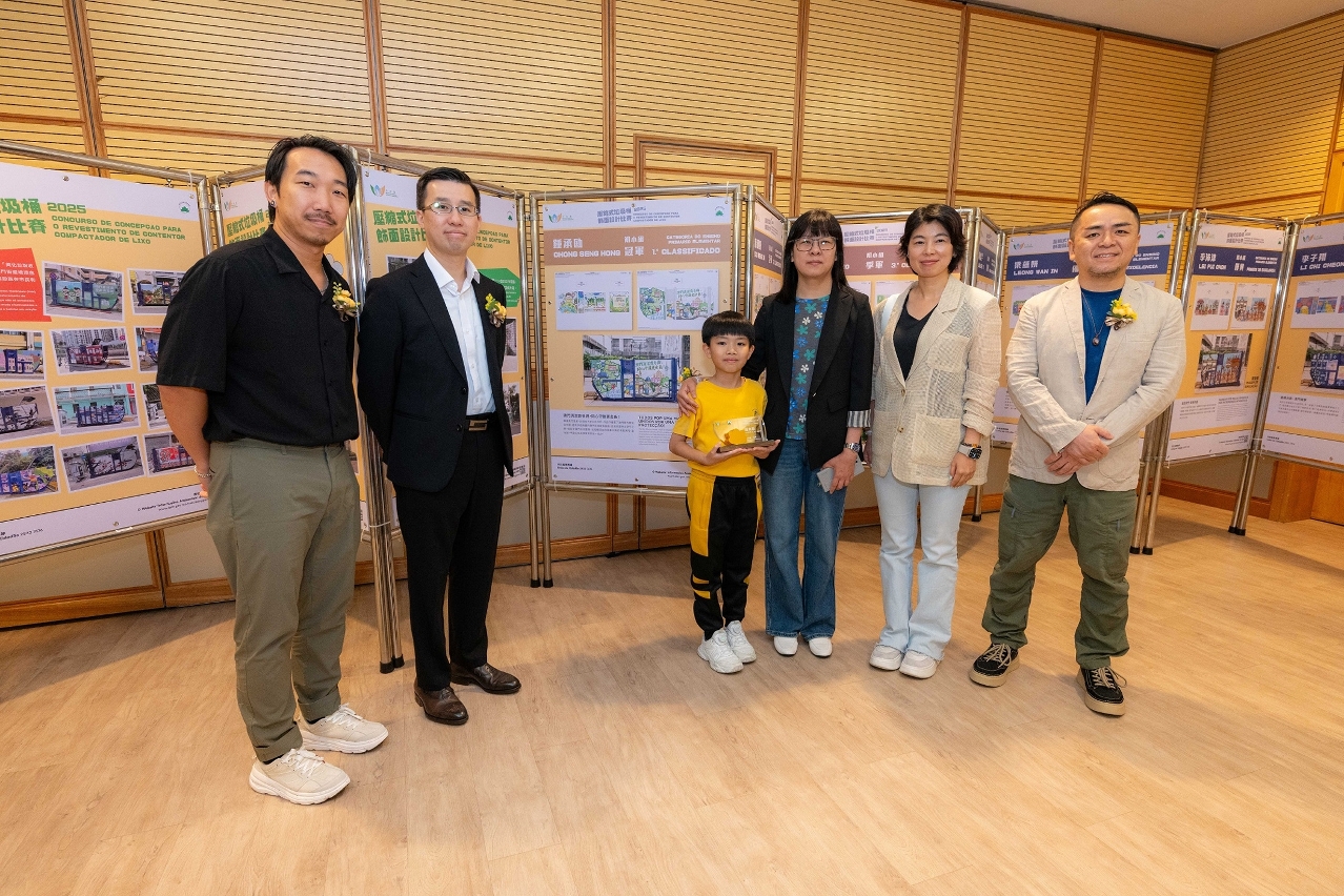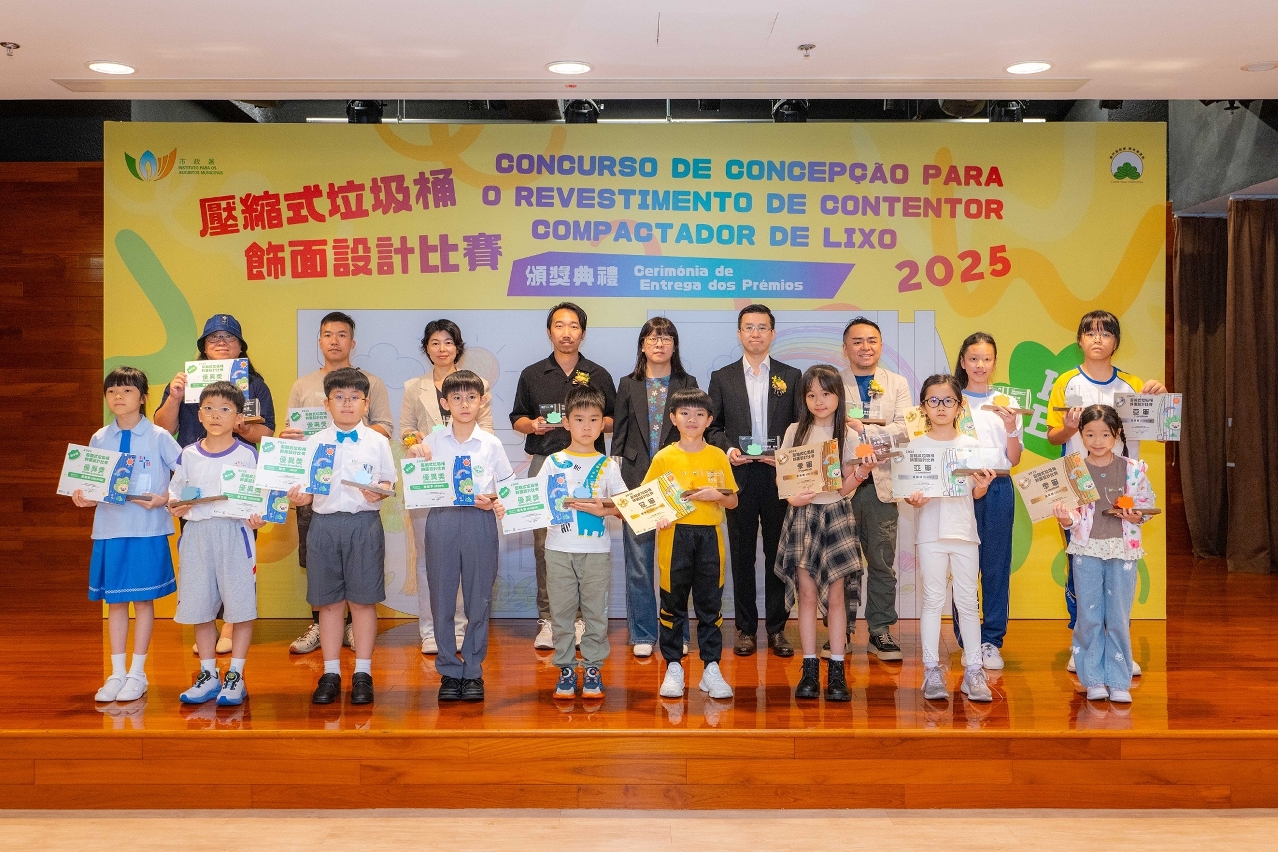 由市政署举办的压缩式垃圾桶饰面设计比赛颁奖典礼6月28日于沙梨头活动中心举行,一众嘉宾、参赛学生及其家长、老师共同见证同学们的创作成果。是次比赛共收到逾一千四百份作品,经评审选出初小组及高小组共十六份得奖作品,其中冠、亚、季军作品将应用于本澳压缩式垃圾桶饰面,真实地呈现于公共街道上。