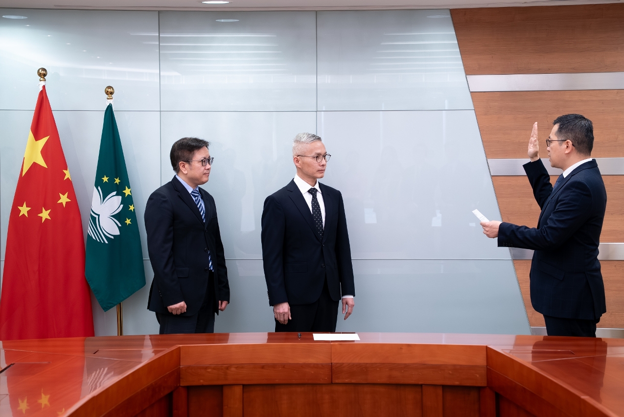 招商投资促进局行政管理委员会主席谢永强、科学技术发展基金行政委员会主席余雨生今(2)日就职,仪式由经济财政司司长戴建业主持,及经济财政司司长办公室主任罗志辉见证。