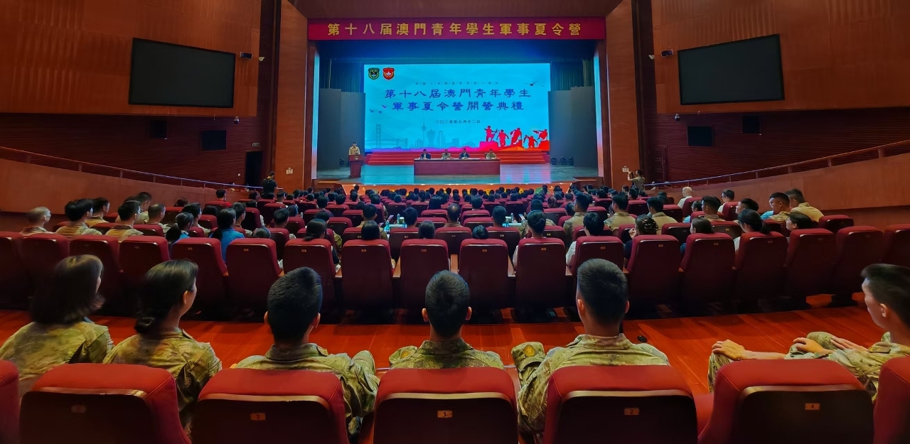 由澳门特别行政区政府与中国人民解放军驻澳门部队合办、教育及青年发展局承办的“第十八届澳门青年学生军事夏令营”于7月12日至18日在驻澳部队氹仔军营进行。中国人民解放军驻澳门部队参谋长邵春贵、法律处处长贺文军、教青局局长龚志明、副局长黄嘉祺、学校领导及代表,以及来自34所高等院校及非高等教育学校,共159名澳门青年学生出席了7月12日的开营礼。