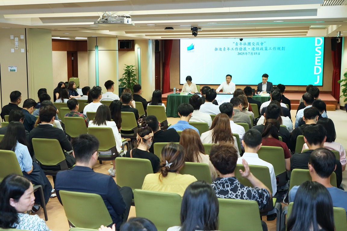 为加强政府与青年社团的沟通,促进青年政策与社团工作方向的有效对接,教育及青年发展局于7月15日举办“推进青年工作发展‧连结政策工作规划”青年社团交流会,透过广泛听取青年社团建议,动态掌握青年群体的核心需求与发展趋势,为优化青年政策提供决策依据。教青局副局长黄嘉祺、青年厅厅长张敏辉、青年发展处处长赵宝威,以及80名青年社团代表出席。
