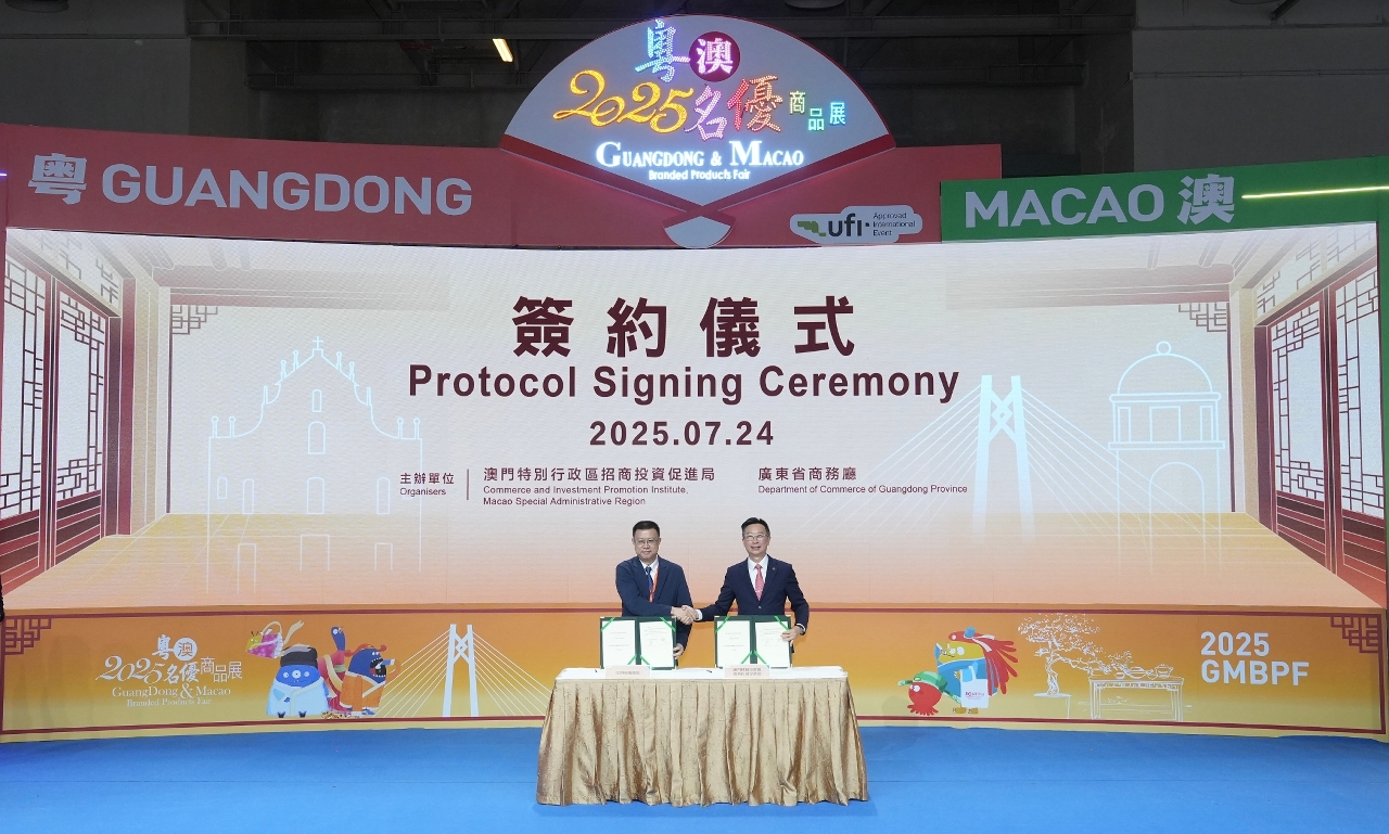 由澳门特别行政区招商投资促进局、广东省商务厅合办的“2025粤澳名优商品展”今(24)日隆重开幕。