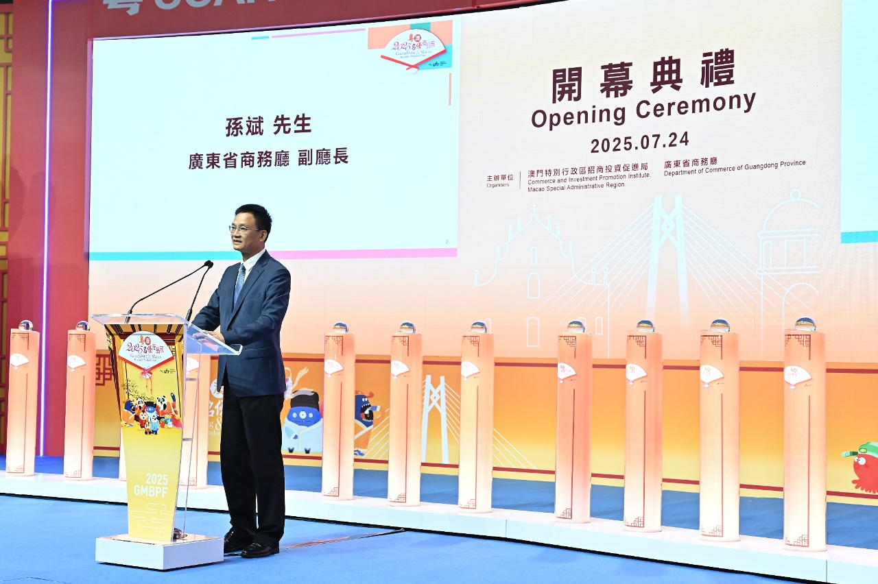 广东省商务厅副厅长孙斌表示当前,广东、澳门两地正深入贯彻习近平主席视察广东、考察横琴、视察澳门的重要讲话和重要指示精神,以琴澳一体化为纽带,深化粤港澳大湾区建设,助力澳门经济多元发展。今年1至6月,广东对澳门货物进出口90.1亿人民币,占内地与澳门货物贸易额的六成多。期待以展为媒,粤澳两地企业共享市场机遇,共拓产业空间。